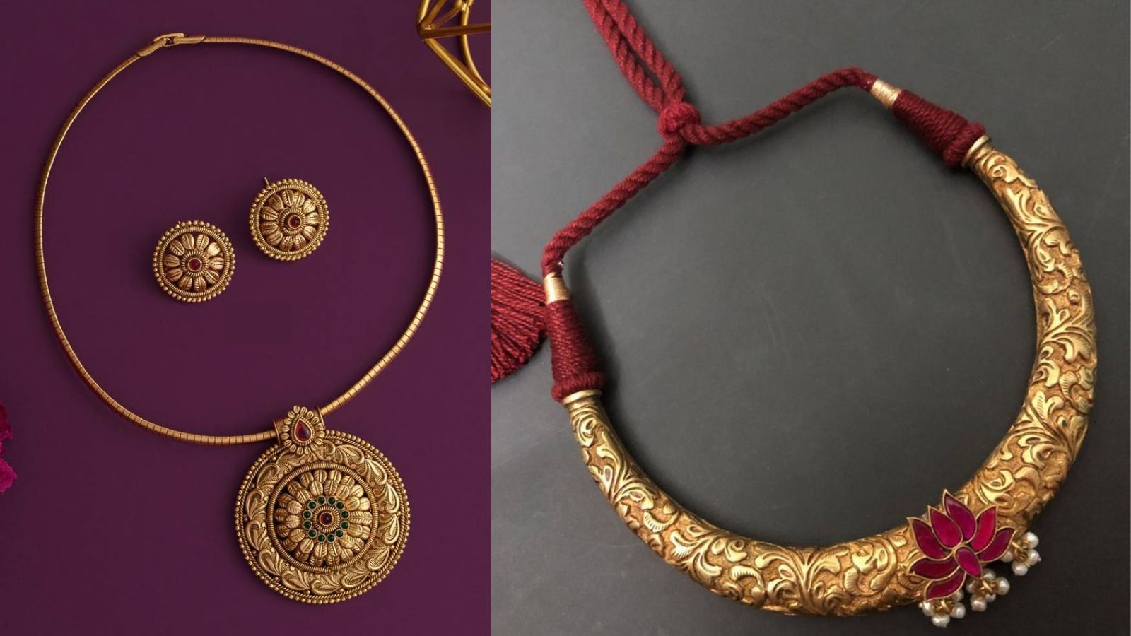 कम बजट में गले की खूबसूरती बढ़ाना चाहती हैं? 2 तोले में बनने वाले इन चार नेकलेस डिज़ाइन्स से पाएं 4 तोले वाला हैवी लुक। हसली, ठुशी, गुलबंद और ढोलकी हार से दिखें खूबसूरत।