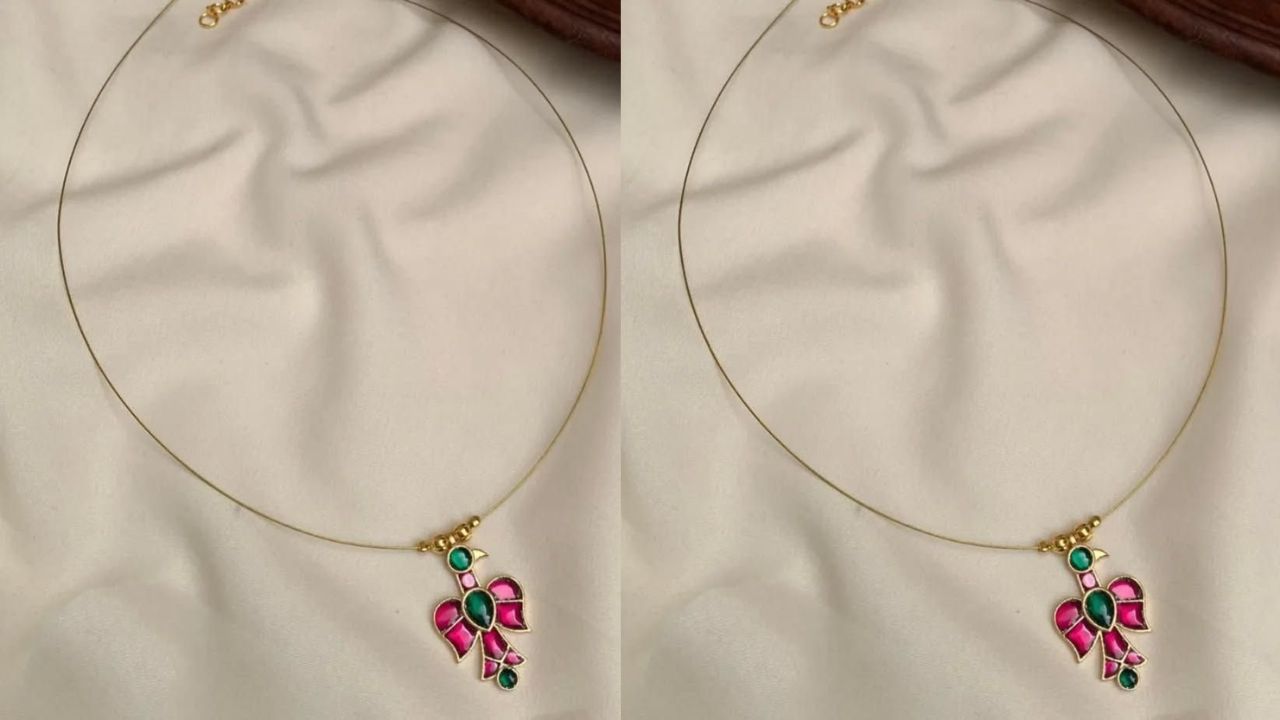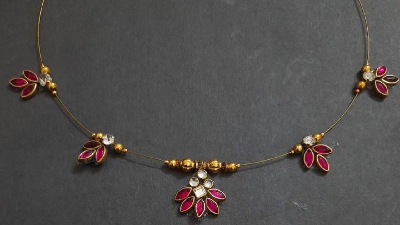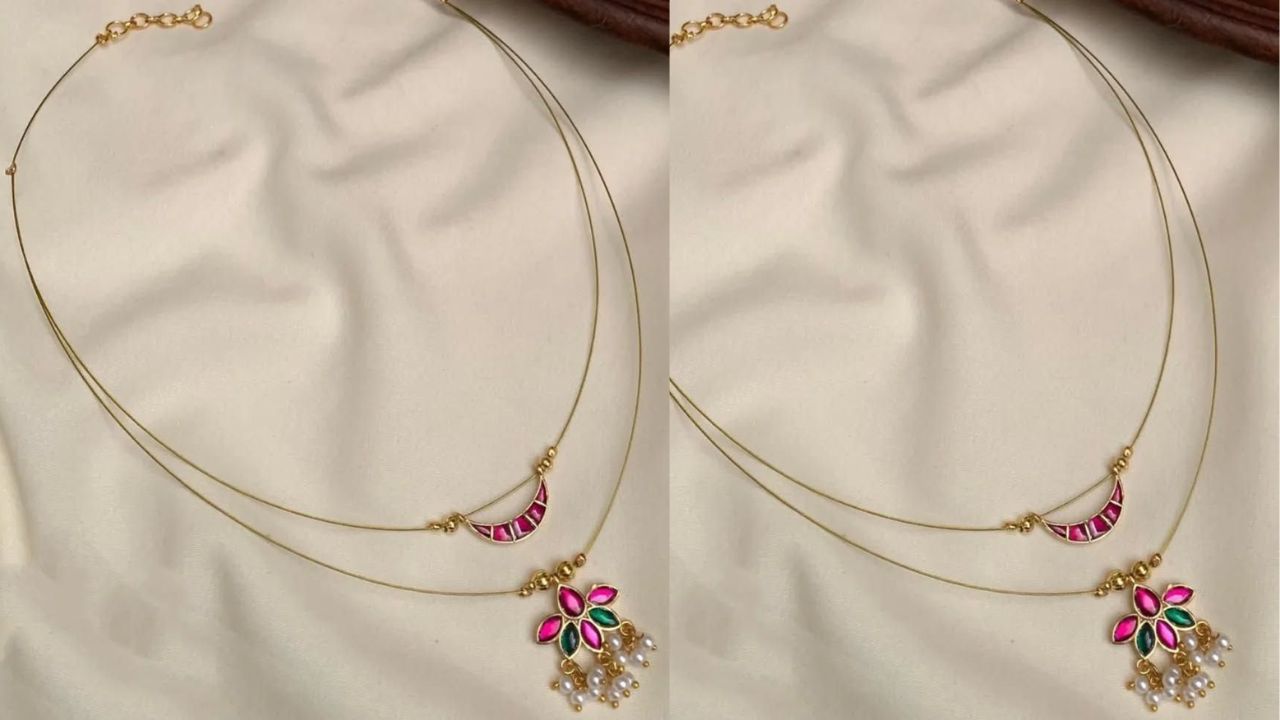 अगर आप हल्के लेकिन फेमिनिन डिजाइन की तलाश में हैं तो फ्लावर पेंडेंट वाला नेकलेस बेस्ट है। इसमें स्टोन वर्क और कुंदन से बना छोटा-छोटा फूल पेंडेंट है। ये डिजाइन डेली वियर के साथ-साथ फेस्टिव लुक्स के लिए भी परफेक्ट है।