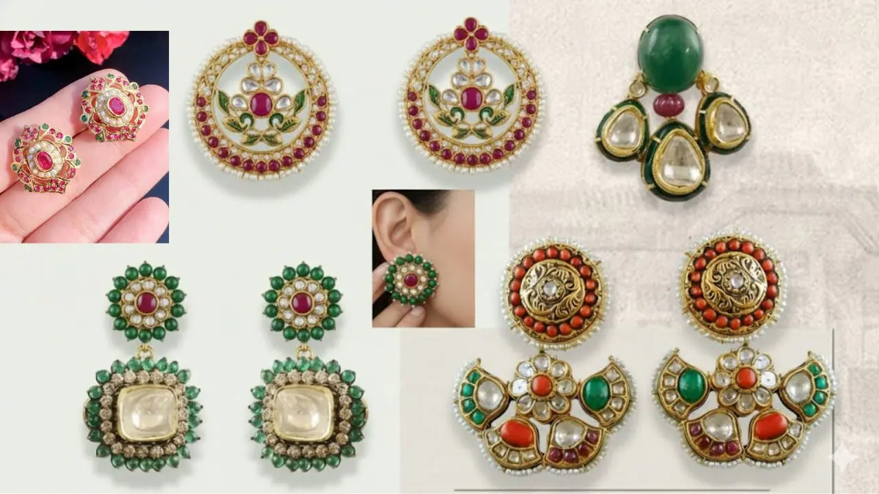 Trendy Jadau Earring Tops: जड़ाऊ इयररिंग में टॉप्स या स्टड के कुछ बेहतरीन और शानदार डिजाइन लेकर आए हैं। इन दिनों जड़ाऊ टॉप्स के साथ-साथ झुमका, बाली और कनौटी समेत कई और डिजाइन बहुत ज्यादा पसंद किया जा रहा है। शादी, पार्टी, पूजा या फिर इंडियन और वेस्टर्न दोनों तरह के आउटफिट के साथ बहुत खूबसूरत लगेगी।
