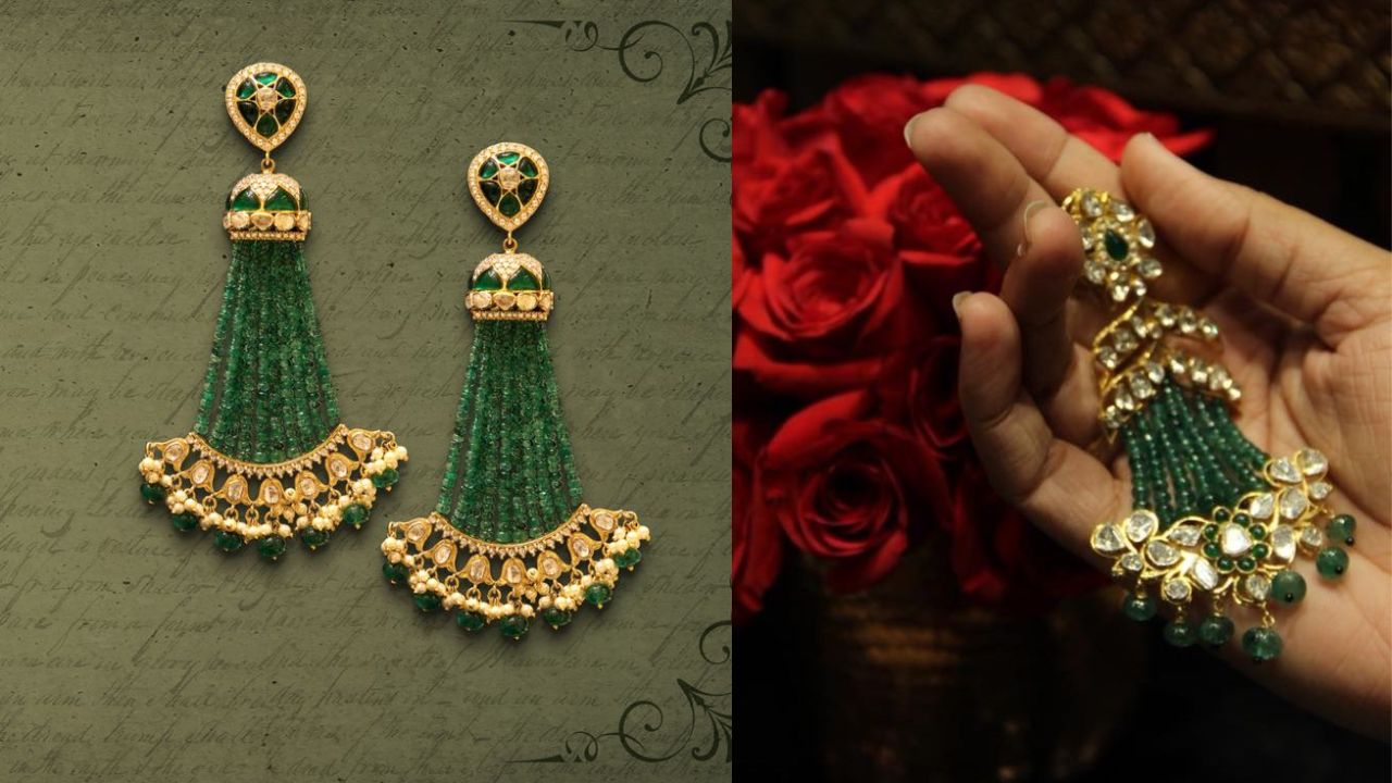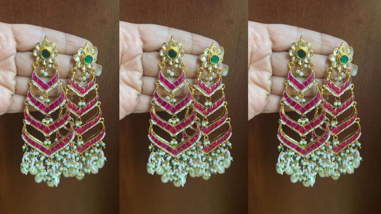 कुंदन का काम किसी भी जूलरी को लग्जरी और क्लासी लुक देता है। कुंदन एक ऐसा स्टोन है, जो गोल्ड के साथ भी उतना ही जचता है जितना कि आर्टिफिशियल जूलरी के साथ। पासा इयररिंग की ये डिजाइन कुंदन के काम के साथ बहुत ही शानदार लग रही है और आपकी ग्रीन आउटफिट के साथ भी खूब जचेगी।
