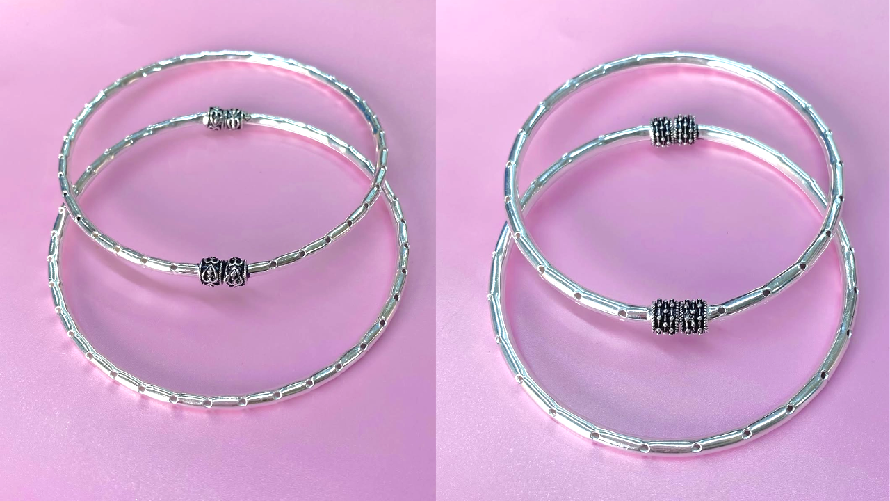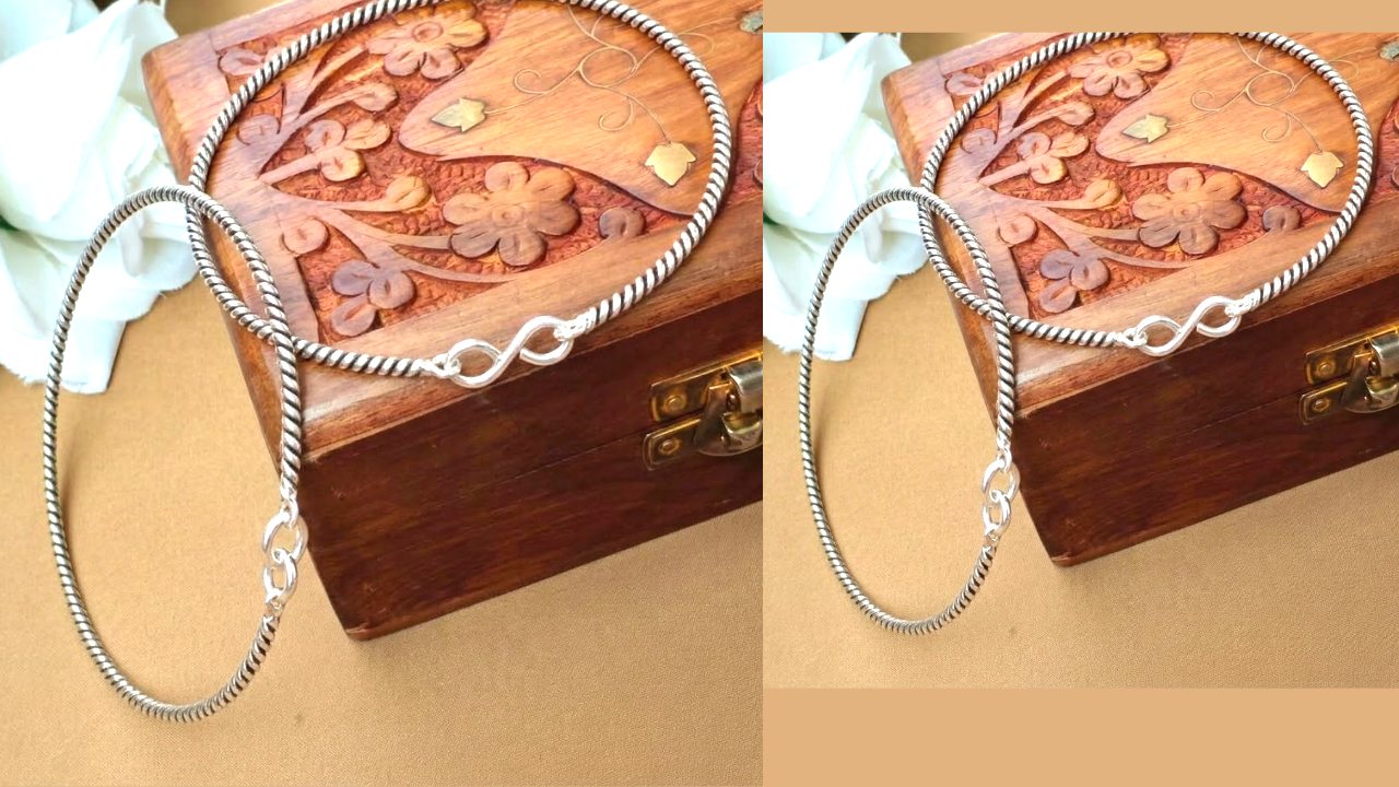लड़कों के पैरों में सिंपल बट स्टाइल देने वाली पायल ज्यादा अच्छी लगती है। अगर आप भी बेसिक पैटर्न से हटकर कुछ अलग सा चाहते हैं तो ट्विस्टेड स्पाइरल कड़ा पायल को विकल्प बनाएं। इसकी रग्ड डिजाइन काफी बोल्ड है। तस्वीर में दिखाई एंकलेट को दो अलग-अलग डिजाइन पर बनाया गया है, ऊपरी हस्सा ट्विस्टेड और दूसरा इनफिनिटी सिंबल पर है।