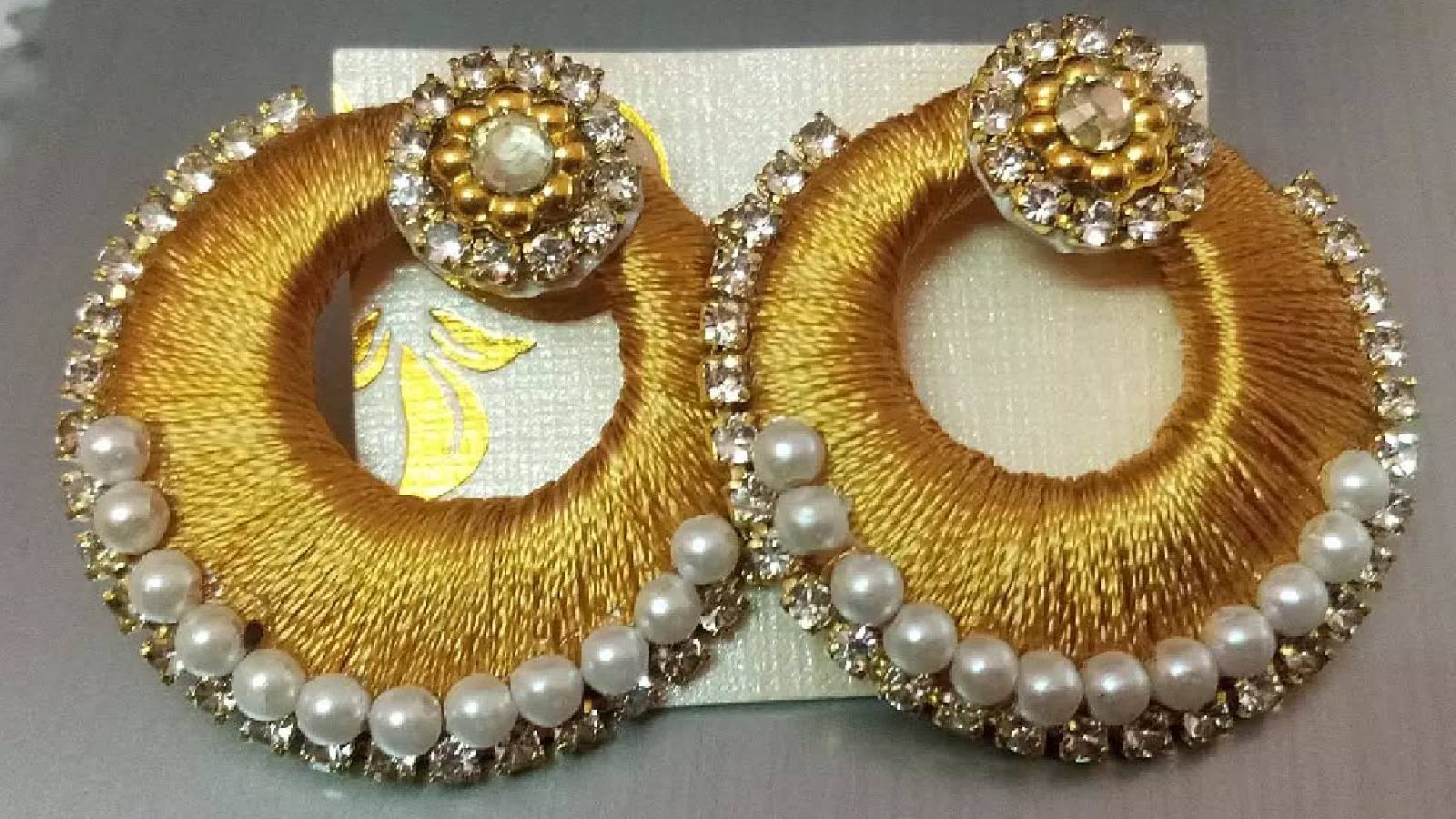 सफेद नग और गोल्डन धागों से सजे हुए स्टड दिखने में काफी खूबसूरत लग रहे हैं। स्टड में मोतियों का भी काम किया गया है। अगर आप गोल्डन ड्रेस पहन रही हैं, तो उसके साथ यह खूबसूरत से धागे के बने स्टड पहन सकते हैं। यह आपको न सिर्फ अलग लुक देगा बल्कि सबसे खास दिखाएगा। आप आसानी से ऐसे इयररिंग्स 200 से 500 रु की रेंज के अंदर ऑनलाइन खरीद सकते हैं। इसमें आपको कुंदन वर्क भी मिल जाएगा।