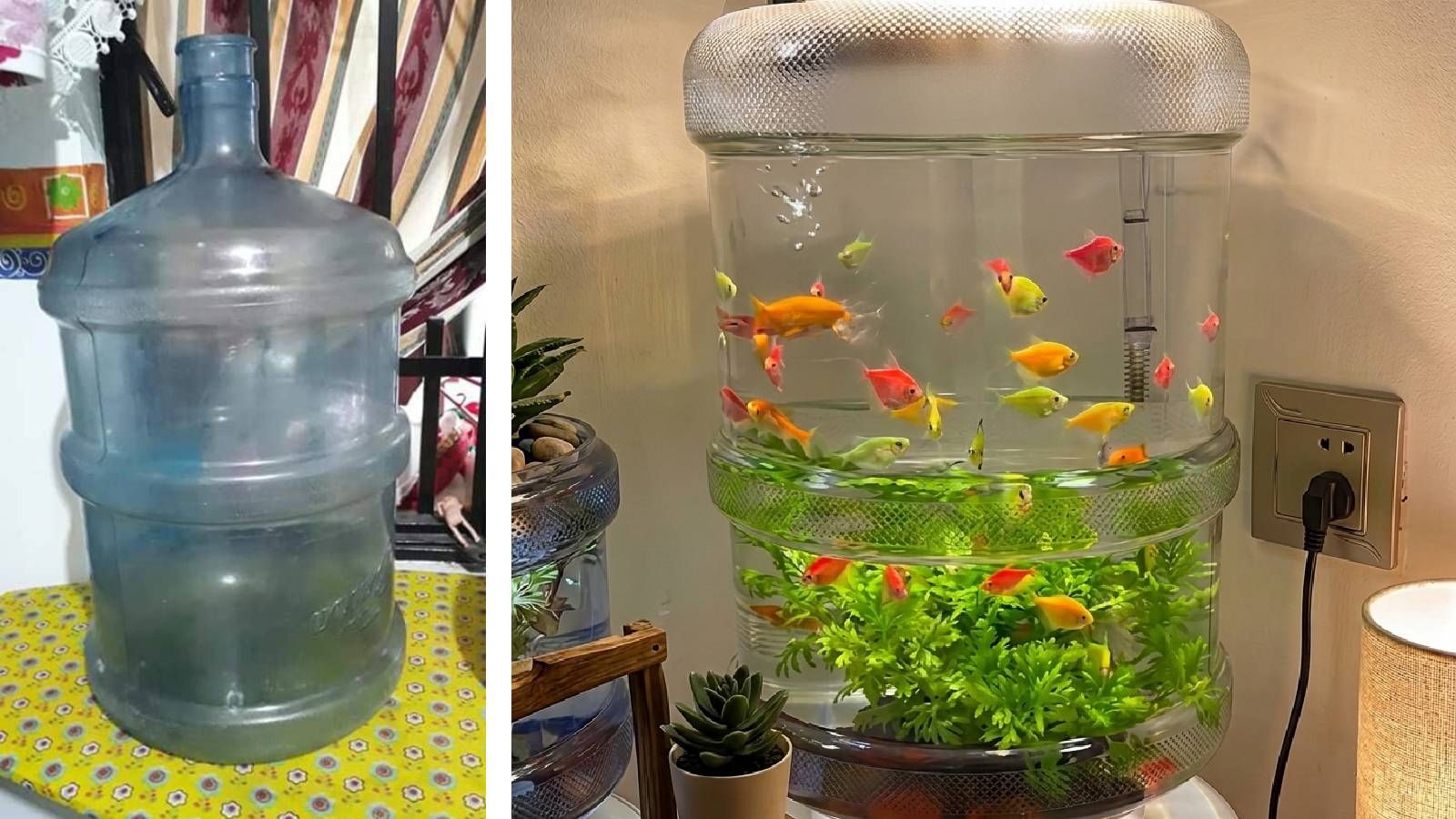 प्लास्टिक वॉटर केन से फिश एक्वेरियम