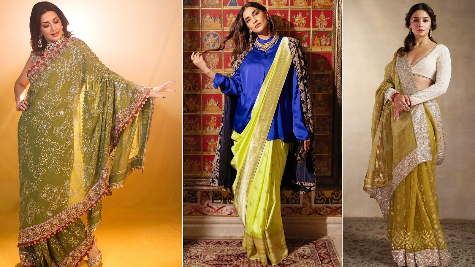 ग्रीन चुनरी साड़ी से लेकर हैवी एंब्रॉयडरी सिल्क साड़ी या फिर चौड़े बॉर्डर की ऑर्गेंजा साड़ियां आपकी खूबसूरती हो बढ़ा देंगी। ऐसी साड़ी के साथ फुल स्लीव या फिर साटन शर्ट स्टाइल ब्लाउज पहनकर सज जाएं। मिनिमल ज्वेलरी आपको स्टाइलिश बना देगी।