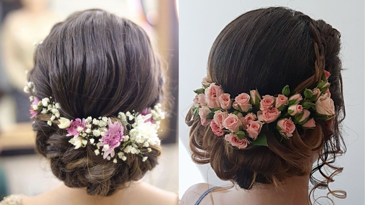 - बालों में बन आप नीचे की ओर बनाएं और फिर फूल लगाएं