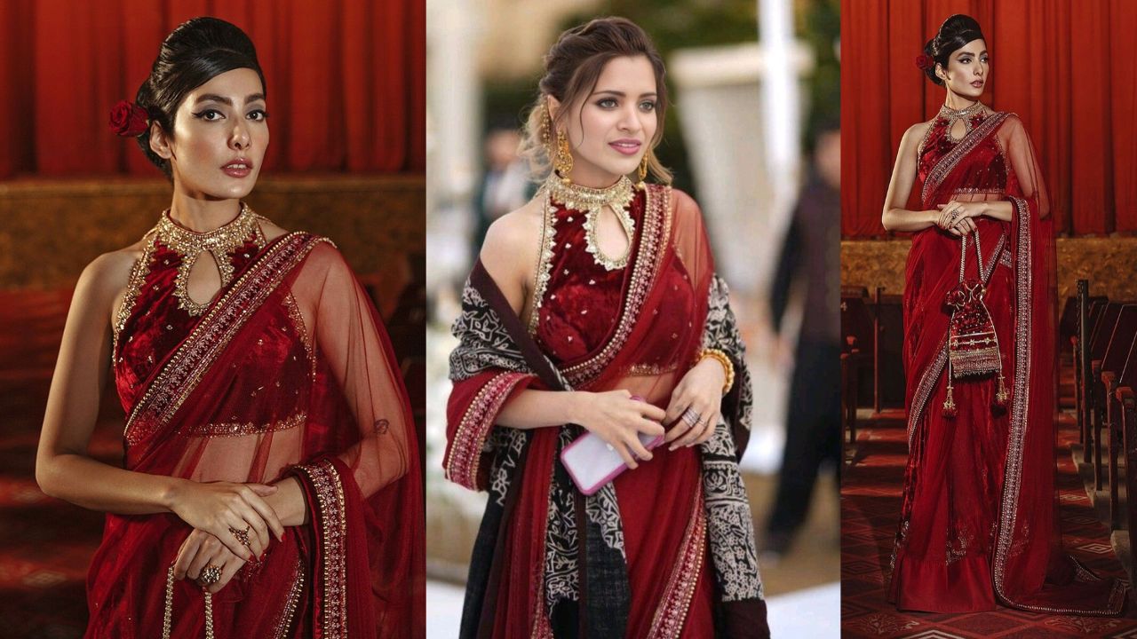 वी-नेकलाइन में ब्लाउज आजकल काफी पसंद किया जा रहा है। इस तरह के डिजाइन लुक को स्लिम और लंबा दिखाते हैं। लाल साड़ी के साथ मरून या फिर रेड कलर में इस तरह कट स्लीव या फिर फुल स्लीव वाली वी-नेकलाइन ब्लाउज बनवा सकती हैं। ये आपके ओवरऑल लुक को डिफाइन केरगा।