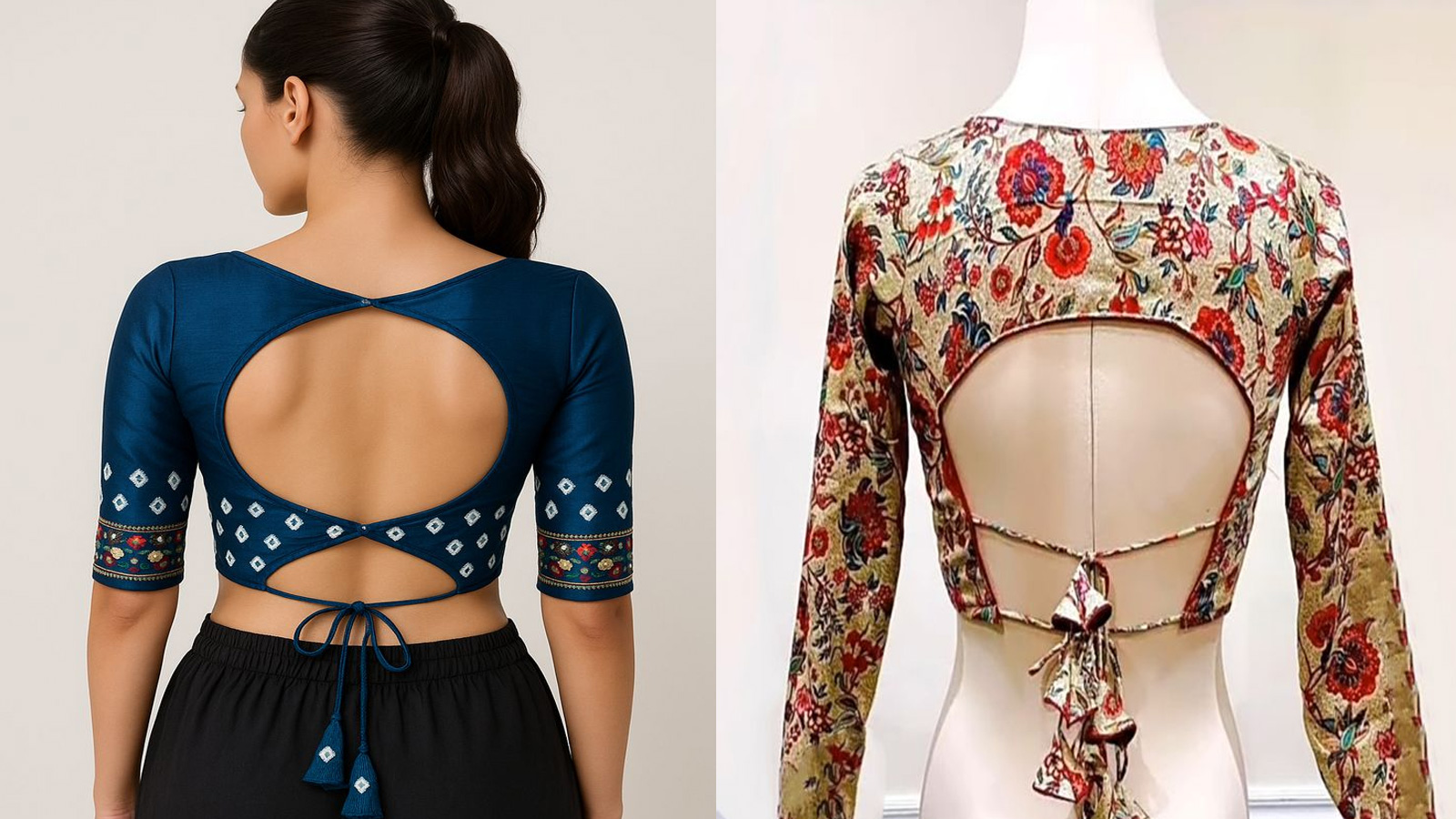 राउंड शेप एंड उल्टा यू शेप डोरी ब्लाउज डिजाइंस