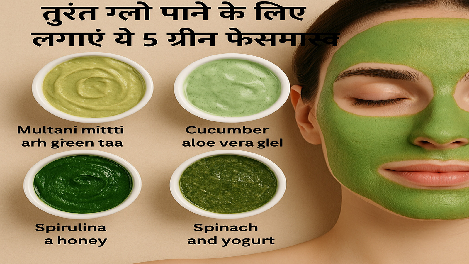 नेचुरल इंग्रीडिएंट्स से बने मास्क न केवल स्किन को डीटॉक्स करते हैं, बल्कि त्वचा में निखार और फ्रेशनेस भी लाते हैं। आइए जानें 5 बेहतरीन ग्रीन फेसमास्क के बारे में जो तुरंत ग्लो देंगे: