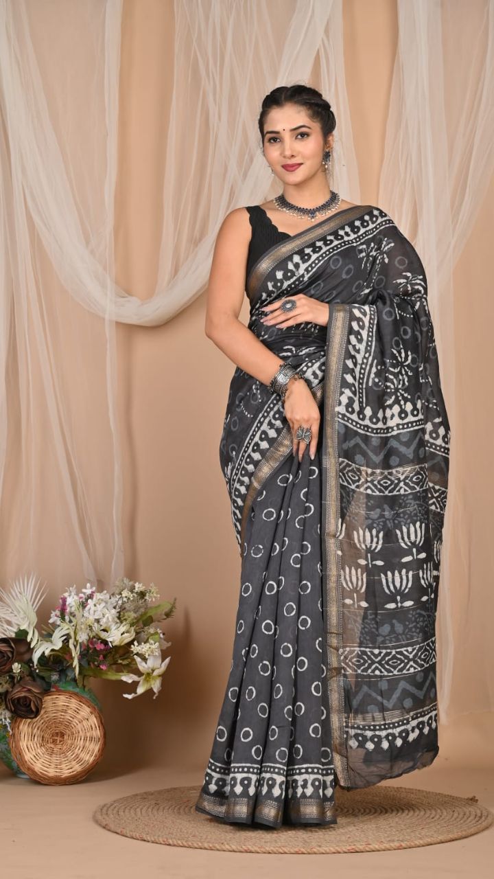 अगर आपको ऑफिस में कम्फर्टेबल और एलीगेंट लुक चाहिए तो कॉटन हैंडलूम साड़ी बेस्ट है। हल्की, ब्रीदेबल और नीट टैक्सचर वाली ये साड़ियां आपको क्लासी लुक देती हैं। ग्रे, बेज, लाइट ब्लू या पेस्टल शेड्स में प्लेन बॉर्डर हैंडलूम साड़ी फॉर्मल मीटिंग से लेकर डेली ऑफिस वियर तक के लिए परफेक्ट है। इसे स्लीवलेस या एल्बो स्लीव्स कॉटन ब्लाउज के साथ पहनें और मिनिमलिस्ट जूलरी कैरी करें, लुक इंस्टैंटली प्रोफेशनल येट स्टाइलिश लगेगा।
