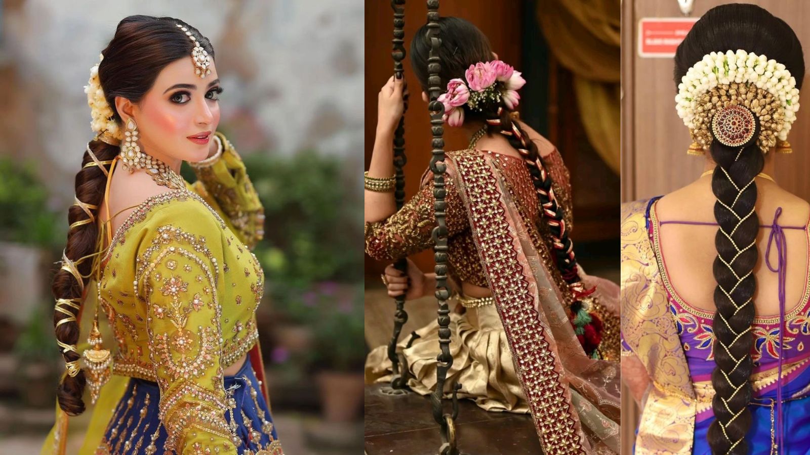 ब्रेडेड हेयर विथ हैवी गजरा का ये लुक भी बहुत सुंदर और बनाने में सिंपल है। इसके लिए पहले तो आप खूब सारा गजरा खरीद लें और बालों में चोटी बना लें। अब ऊपर में गजरा लपेटें और फिर नीचे तक क्रिस क्रॉस या स्पायरल स्टाइल में गजरा लपेटें। गजरा लपेटने के बाद आप चाहें, तो नीचे में लटकन भी गजरा से जोड़ सकती हैं।