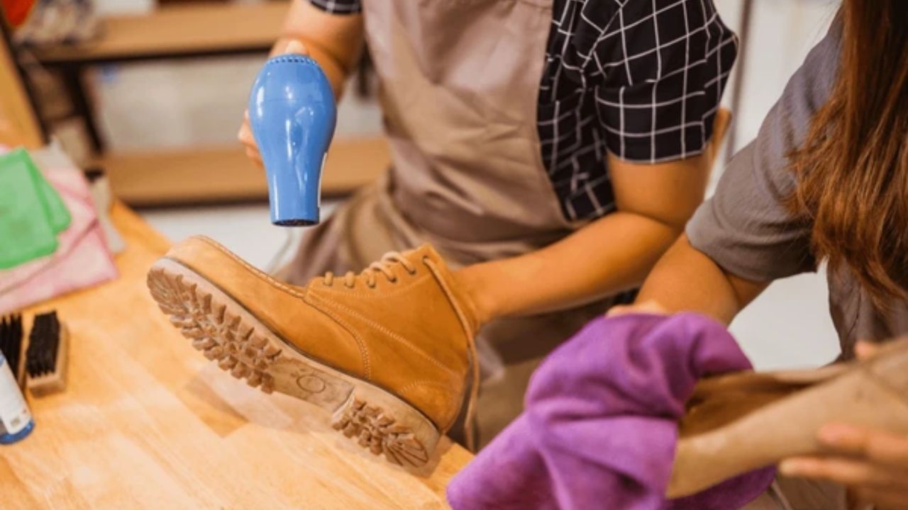 - जूतों के अंदर ड्रायर को थोड़ा दूर से चलाएं। लगातार 5–7 मिनट तक ड्रायर चलाएं।