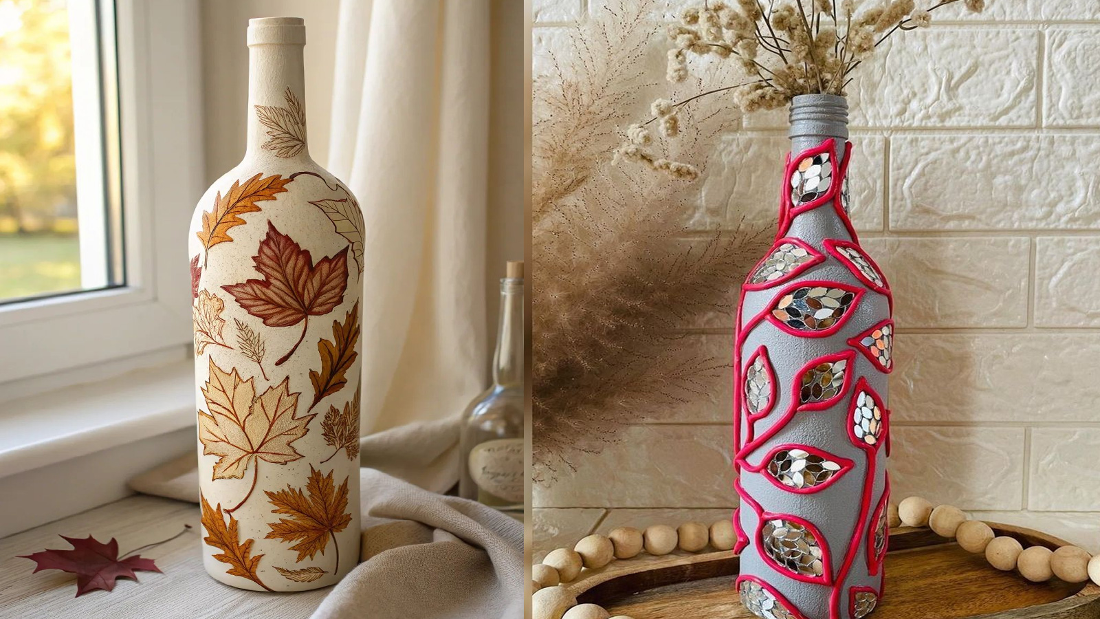वाइन बोतल को लीफ पैटर्न में सजाएं