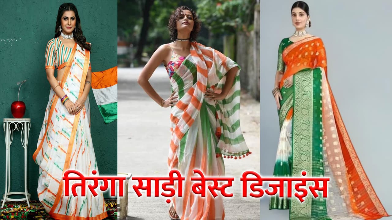 Tiranga saree Designs: 26 जनवरी को हमारा देश गणतंत्र दिवस मनाता है। स्कूल, कॉलेज और कार्यस्थल पर झंडा फहराया जाता है। इस मौके पर कार्यक्रम में हिस्सा ले रहे लोगों कि कोशिश हो रही होती है कि वो कुछ ऐसा पहने जिसमें देशभक्ति नजर आएं, खासकर स्कूल टीचर और प्रोफेसर। अगर आप भी एजुकेशन फिल्ड में कार्यरत हैं और तिरंगा पैटर्न में साड़ी पहनना चाहती है, तो यहां पर हम आपको कुछ डिजाइंस दिखाएंगे जिसे आप अपने पसंद का चुन सकती हैं।