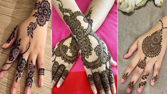 अगर आपको गोल टिक्की डिजाइन पसंद है, तो इसे अरेबिक बेल के साथ जरूर ट्राई करें। इसमें हथेली के बीच में गोल टिक्की बनाई जाती है और उससे जुड़ी बेल हथेली से होते हुए उंगलियों तक जाती है। ये डिजाइन ट्रेडिशनल के साथ-साथ मॉडर्न लुक भी देती है। खासकर अगर आप हरे रंग की चूड़ियों और गोल्डन रिंग्स पहनेंगी, तो ये डिजाइन आपके हाथों को और भी खूबसूरत बना देगी।