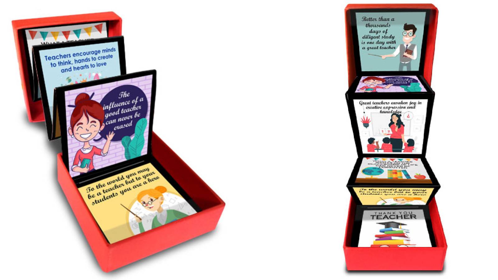 मात्र 199 रुपए में आप excitinglives से टीचर्स डे के लिए मैसेज बॉक्स खरीद सकते हैं। मैसेज बॉक्स में हाई क्वालिटी प्रिंट के स्ट्रिप्स हैं, जिनमें टीचर्स के लिए खास कोटेशन प्रिंट किए गए हैं। दोनों साइड में प्रिंटेड स्ट्रिप्स टीचर्स के लिए बेस्ट गिफ्ट साबित होंगी। ऐसे गिफ्ट को आपकी टीचर हमेशा संभाल कर रखेंगी।