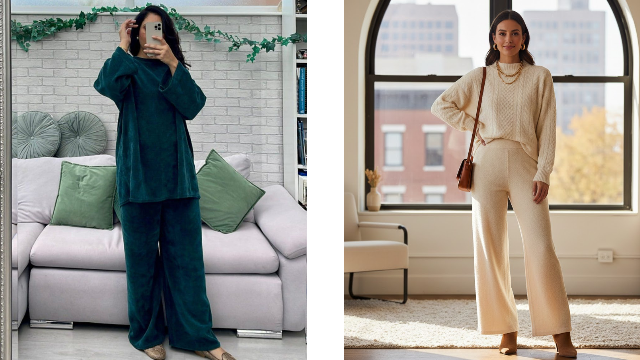 आप हर रोज पहनने के लिए ठंडर वियर ढूंढ रही हैं तो शनील फैब्रिक पर इसे चुनें। यहां सिंपल सा लाउंजवियर विद टील टॉप दिया गया है। प्लश और सॉफ्ट टेक्चर में आने वाली ऐसी ड्रेस कैजुअल और सिंपल लुक के लिए परफेक्ट है। Meesho-Amazon से ये 500-600रु में उपलब्ध है। आप चाहे तो लेदर बेल्ट और बूट संग इसे पार्टी-लुक भी दे सकती हैं।