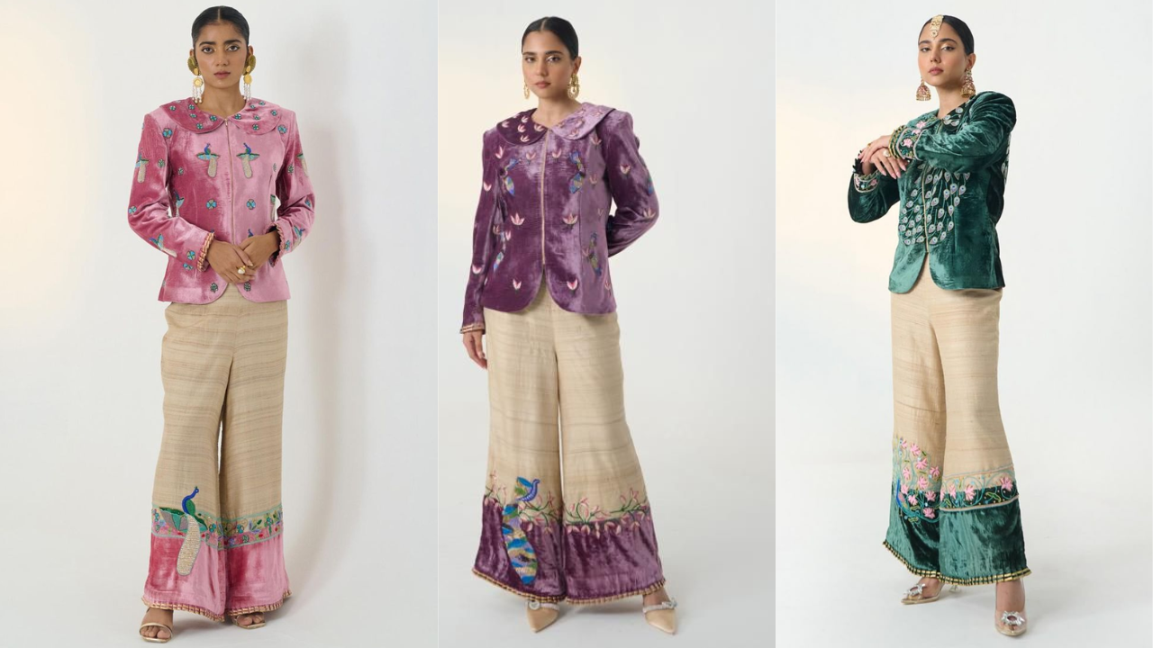 शनील देखने में बिल्कुल वेलवेट जैसा लगता है लेकिन ये थोड़ा रफ-टफ होत है। आप फैशन के साथ मजबूती चाहती हैं तो इसे विकल्प बना सकती हैं। ये स्टाइल+एथनिक का परफेक्ट फ्यूज है। सभी को आर्ड सेट को हैवी एंब्रॉयडरी और पीटर पैन कॉलर नेक पर बनाया गया है। साथ में कॉटन सिल्क टेक्चर्ड पैंड लुक कंप्लीट कर रही है। इसे खास हेमलाइन डिटेलिंग बना रही हैं। बाजार में इस तरह के आउटफिट 2-3 हजार रुपए में खरीदे जा सकते हैं।
