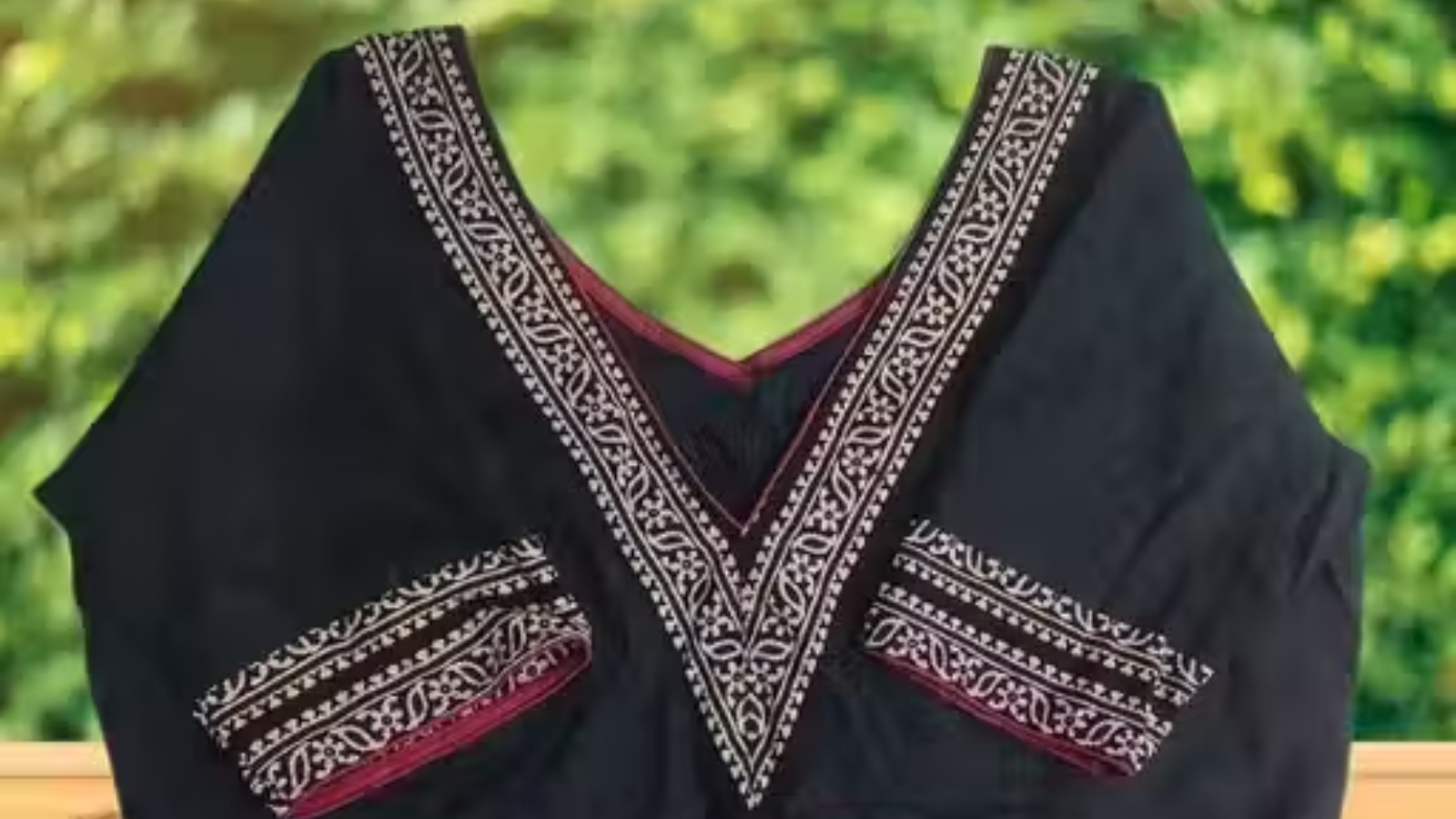 प्लेन ब्लाउज आजकल हर कोई पहनता है। इससे हटकर आप अजरख प्रिंट पर कॉटन ब्लाउज चुनें। ये आराम और फैशन दोनों एक साथ देता है। यहां फ्रंट को ब्रॉड रखते हुए बैक में वी नेक डिजाइन दी गई है। मीशो पर 30 नंबर से 42 नंबर तक के साइज 215 रुपए में लिस्टेड है। अधिक जानकारी के लिए यहां क्लिक करें।