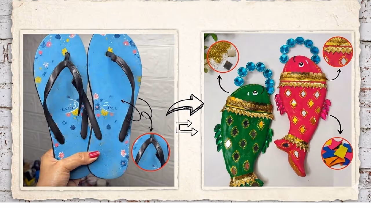 चप्पल से बनाएं खूबसूरत फिश डेकोरेटिव पीस