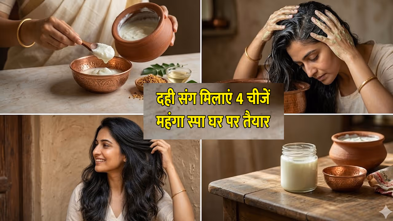 Curd Hair Maks: गर्मी के मौसम में पसीने और धूल बालों को डैमेज करते हैं। बालों से पसीने आने लगते हैं और फिजी हो जाते हैं। ऐसे में बिना रुपए खर्च किए आप दही में 3 चीज मिलाकर हेयर मास्क बना सकते हैं। जो बालों पर जादू करेंगे।