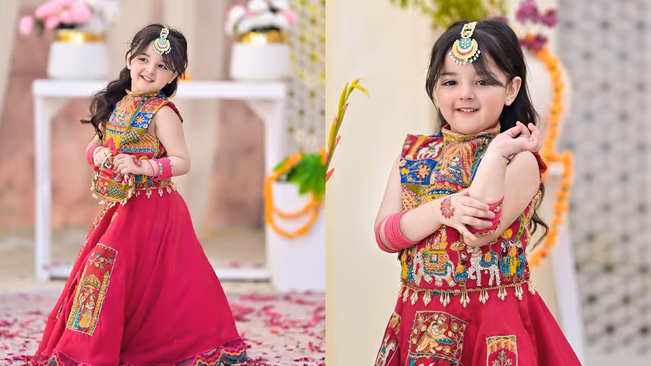 अगर बेटी के बाल लंबे हैं और उन्हें खुल नहीं रखना है, तो आप एक पोनीटेल बनाकर ब्रेड बनाएं और गोल्डन गोटा पट्टी से सजाएं। ऐसा लुक लहंगे के साथ एंब्रॉयडरी स्कर्ट में भी बेहद खूबसूरत दिखेगा। आपको चमकीली गोटापट्टी आसानी से मार्केट में 20 से ₹30 में मिल जाएगी।