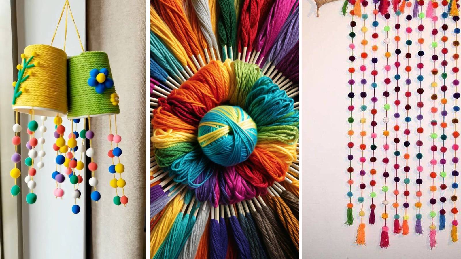 अगर आप पेपर कप कलर नहीं करना चाहते हैं, तो रंगीन ऊन की मदद से उसे रैप कर सकते हैं। यह दिखने में काफी सुंदर लगती है। 4 से 5 कप को डिफरेंट कलर से रंगे। उनमें पॉम पॉम लटकन लटकाएं। इस तरीके से आप कम मेहनत में सुंदर हैंगिंग तैयार कर सकते हैं।