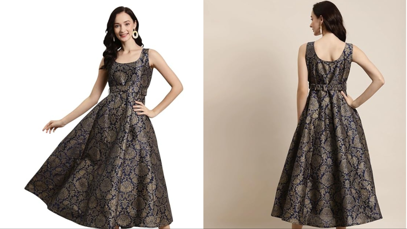 श्लोका मेहता के गाउन का रंग डार्क है, और इसे मोटे फैब्रिक पर बनाया है। अगर स्लीव्स और नेकलाइन से ज्यादा मैचिंग फैब्रिक चाहती हैं तो अमेजन पर उपलब्ध है इस ड्रेस को चुन सकती हैं। हालांकि ये सामान तो नहीं लेकिन मिलता-जुलता लुक देगी। ये फुल लेंथ की बजाय मिडी पैटर्न पर है। अगर आप डीप नेक पहनना पसंद नहीं करती हैं तो इसे चुनें। इस वक्त 60% ऑफर संग 999 में खरीदा जा सकता है। ज्यादा इन्फॉर्मेशन के लिए यहां क्लिक करें।