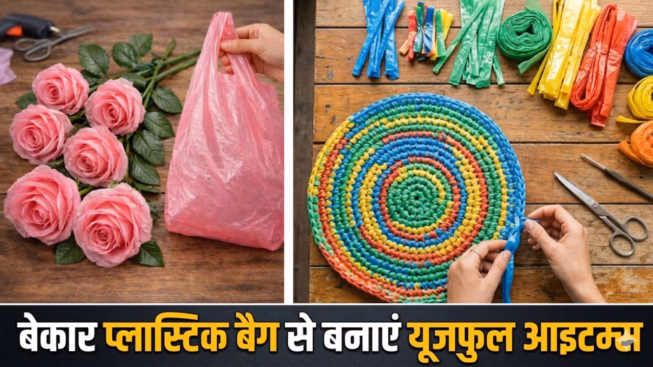 Reusable items from plastic: पॉलीथीन और प्लास्टिक रैपर को रीसायकल करके आप घर में डेली यूज और डेकोरेशन की कई चीजें बना सकती हैं। इससे कचरा भी कम होगा और आपका घर भी क्रिएटिव लगेगा।