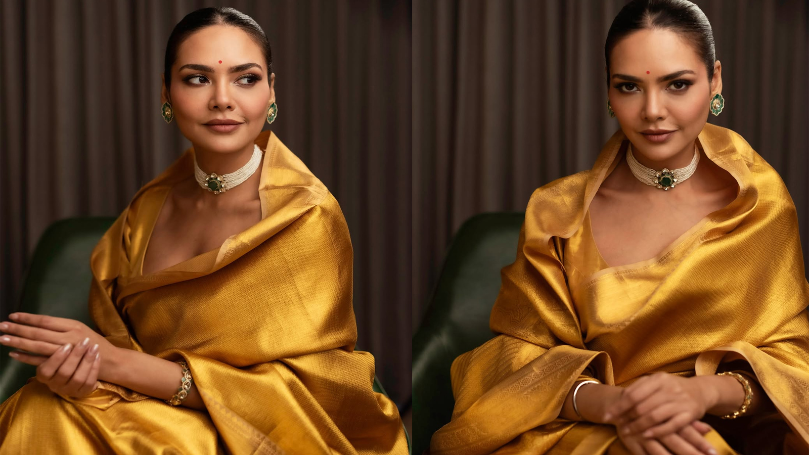 गोल्डन कांजीवरम साड़ी में ईशा गुप्ता