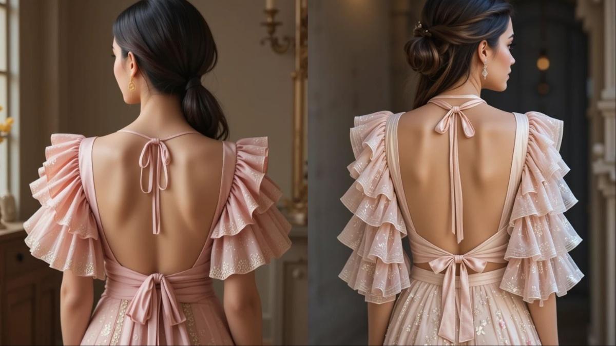 टिप- बैकलेस ब्लाउज के साथ जब भी लेयर्ड स्लीव बनवाएं, तो नेट,टिशू या फिर ऑर्गेंजा फैब्रिक का इस्तेमाल करें। ये रफल्स को अच्छे से फ्लो करने के साथ वॉल्यूम भी कमाल का देता है