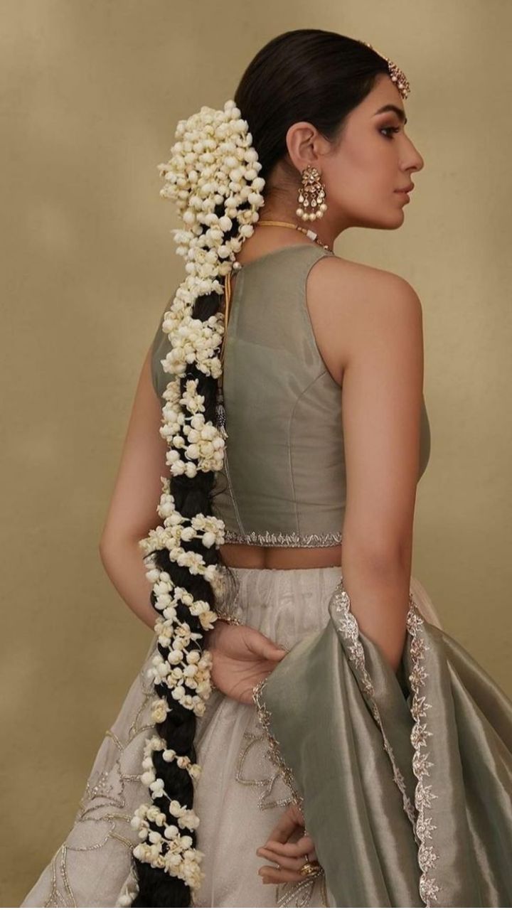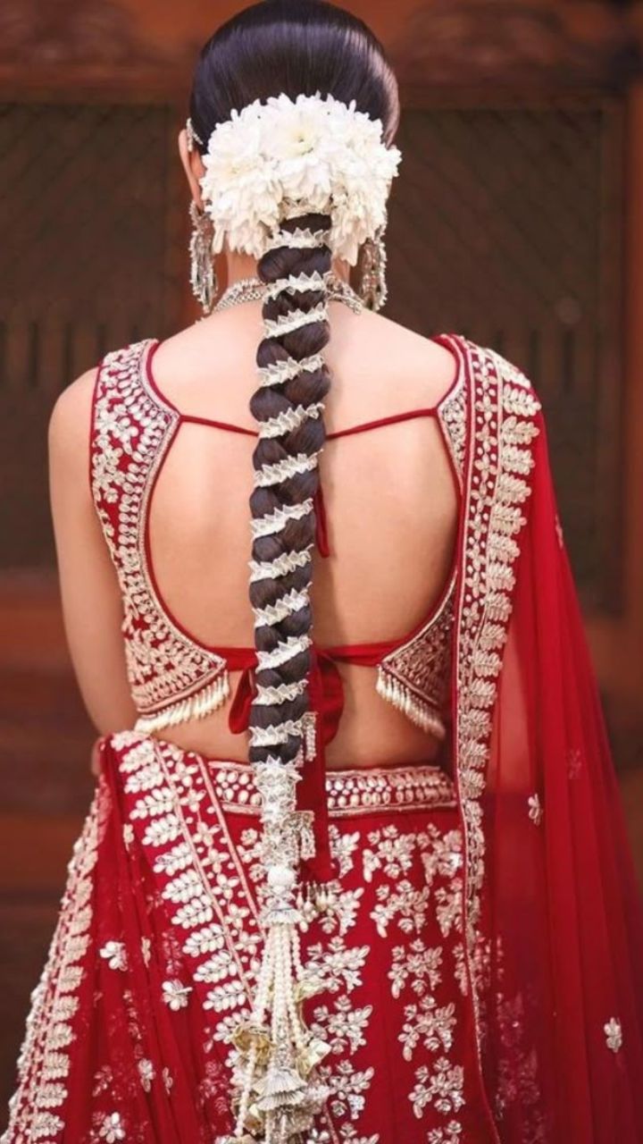 1. क्लासिक लॉन्ग ब्रेड विद गजरा हेयरस्टाइल
