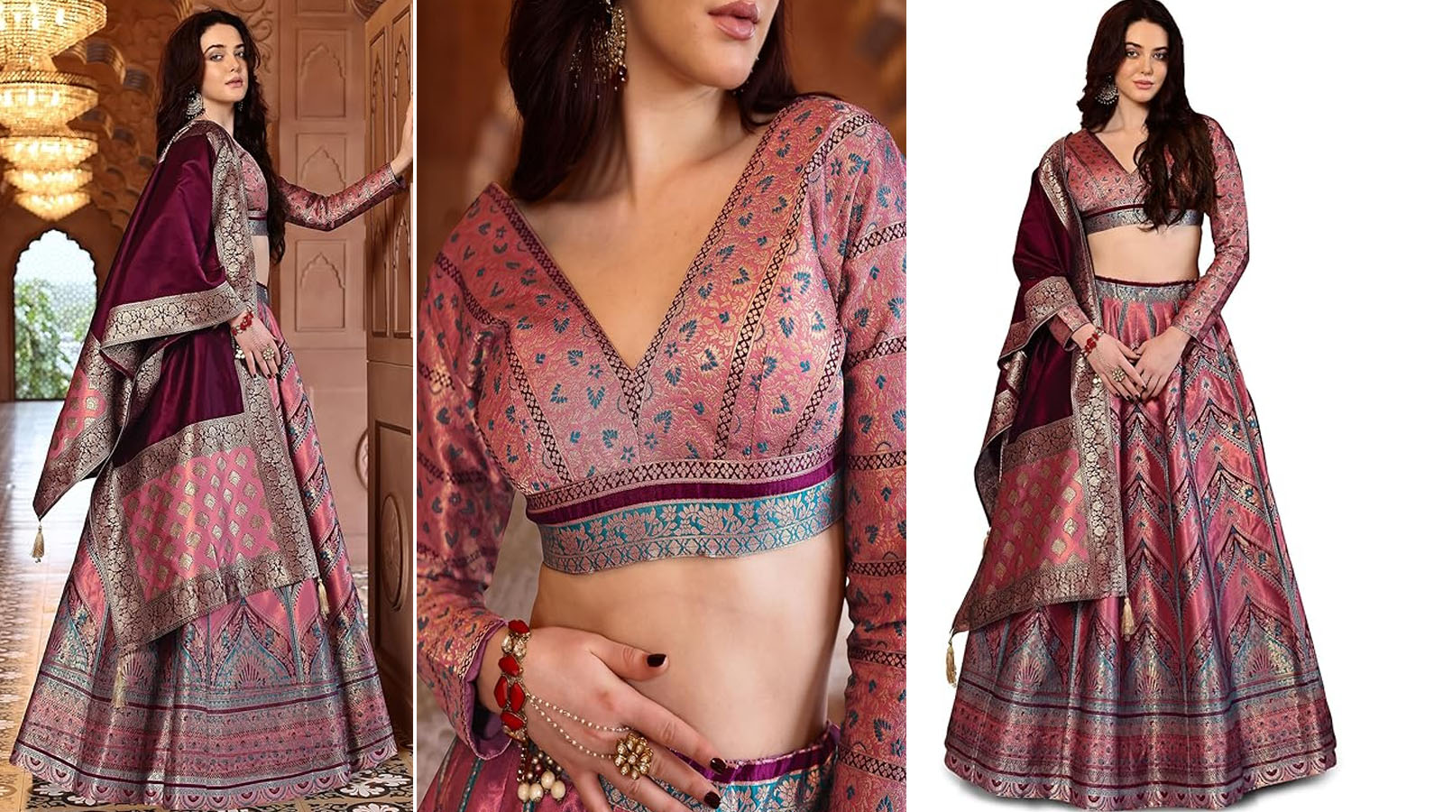 दिवाली पर अगर आप एक परफेक्ट ट्रेडिशनल लुक चाहती हैं, लेकिन बजट कम है तो ये समय आपके लिए गोल्डन है। ऑनलाइन शॉपिंग प्लेटफॉर्म पर इस वक्त 60% से लेकर 80% तक के धांसू डिस्काउंट पर डिजाइनर लहंगा सेट मिल रहे हैं। ऐसे डिजाइन जिन्हें पहनते ही पड़ोसन भी पूछे बिना नहीं रहेगी कि आपने ये लिया कहां से! इंडो-वेस्टर्न से लेकर ट्रेडिशनल और फ्लेयर्ड लुक तक, यहां हम लाए हैं 5 बेस्ट लहंगा सेट ऑप्शन जिन्हें आप दिवाली, भैयादूज और शादी फंक्शन्स तक बिना सोच-समझे खरीद सकती हैं।