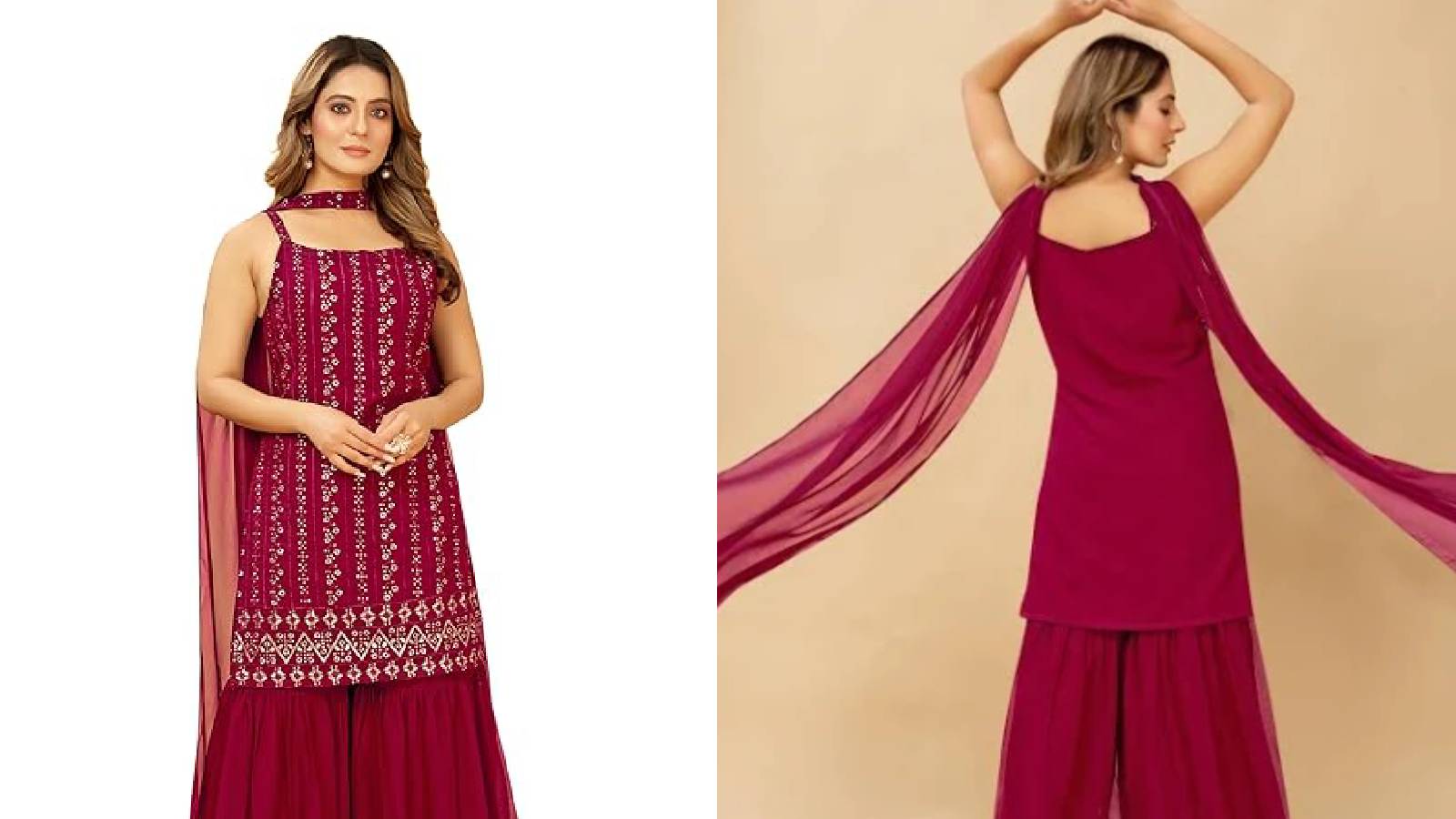 Sharara suit on offer: दिवाली पर पहनें फैंसी डिजाइन वाले शरारा सूट। अमेजन, मिंत्रा और मीशो पर मिल रहे हैं खूबसूरत एंब्रॉयडरी शरारा सूट 70% तक डिस्काउंट में। शॉर्ट अनारकली, स्ट्रेट कुर्ता और पार्टी वियर शरारा सूट में पाएं एलिगेंट लुक।