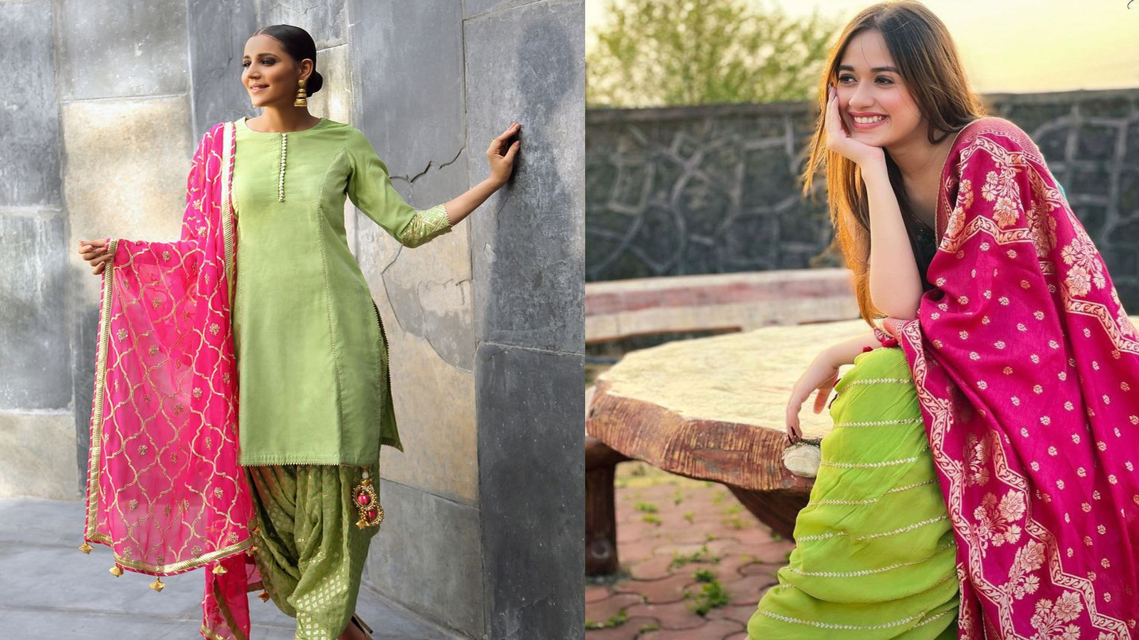 अगर आप थोड़े कलरफुल और कूल लुक की तलाश में हैं, तो पिंक दुपट्टा अपने ग्रीन सूट के साथ ट्राई करें। यह लुक आपको यंग और वाइब्रेंट दिखाएगा। आप स्ट्रेट फिटिंग या फिर पंजाबी स्टाइल ग्रीन सूट के साथ पिंक दुपट्टा जोड़ सकती हैं।