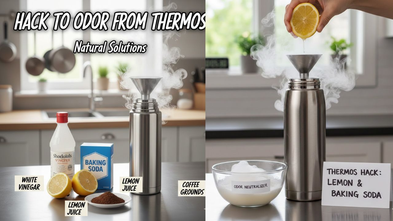How to Remove Thermos Smell: थर्मस के अंदर से आ रही पानी, दूध या फंगल बदबू से परेशान हैं? बेकिंग सोडा, नींबू-नमक, सिरका और चावल जैसे घरेलू हैक्स से मिनटों में स्मैल हटाएं। सही क्लीनिंग टिप्स से थर्मस को रखें हमेशा फ्रेश और सेफ।