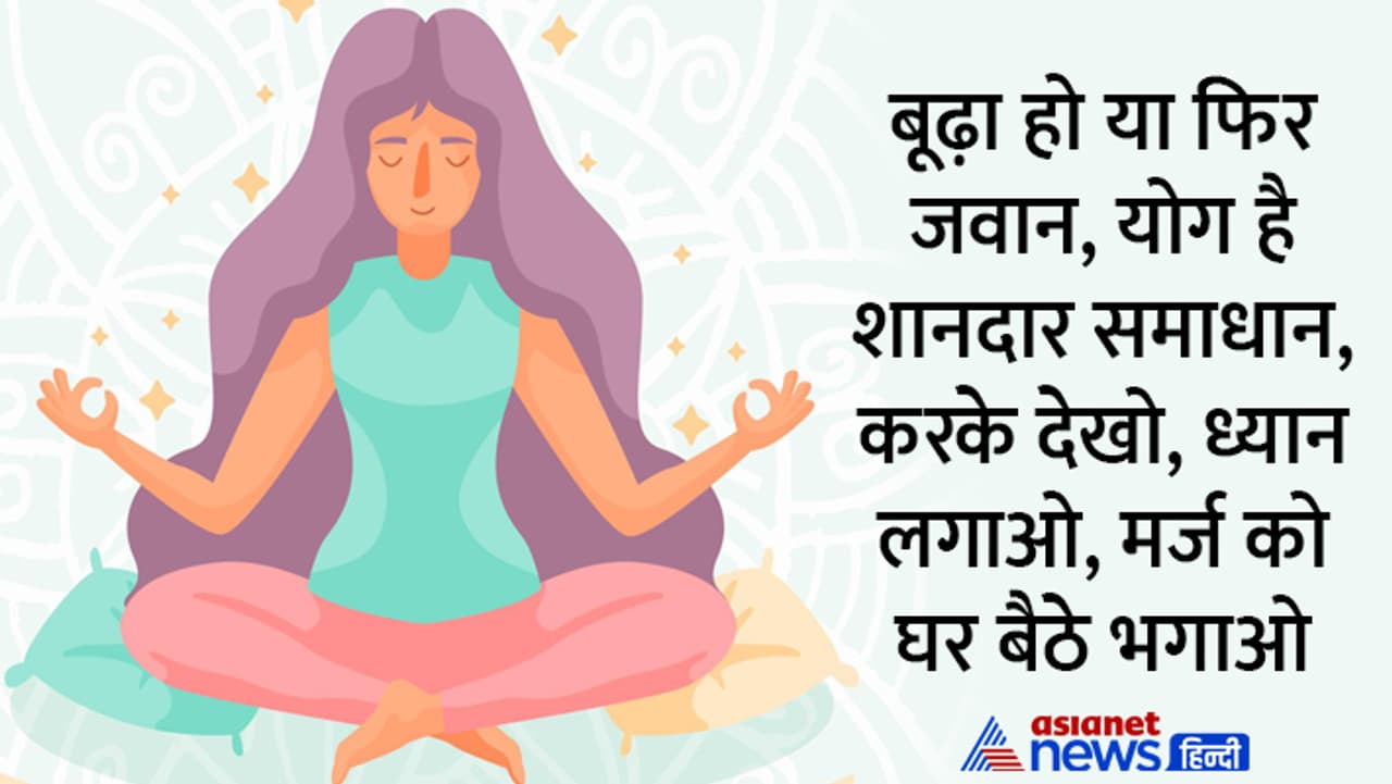 बूढ़ा हो या फिर जवान, योग है शानदार समाधान, करके देखो, ध्यान लगाओ, मर्ज को घर बैठे भगाओ।