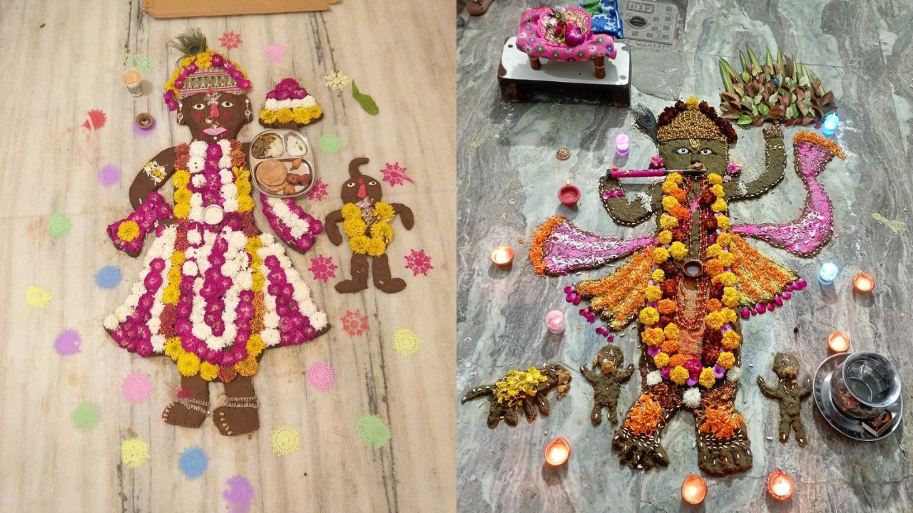 हमेशा गाय का गोबर मिले ये जरूरी नहीं है, ऐसे में लोग पूरा गोवर्धन केवल फूलों से बनाते हैं। इसके लिए पहले चॉक से गोवर्धन गिरिराज की आकृति बनाएं, फिर उसे फूलों से छोटे फूलों को बेस पर लगातार और घिरावदार तरीके से सजाएं। गेंदा, गुलाब, सेवती, चंपा और दूसरे फूल और उनके पंखुड़ी से गोवर्धन गिरिराज को सजाएं। इसे सजाने के लिए आप पत्तियों, नारियल या हल्दी के छोटे टुकड़ों का भी यूज कर सकते हैं।