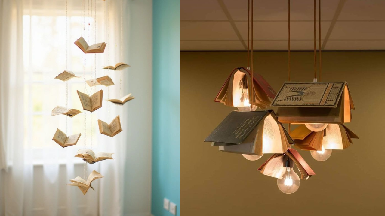 घर के अंदर आने वाले रास्ते के लिए पुरानी किताबों से आप बुक विंड चाइम (Wind Chimes) बना सकती हैं। हालांकि ध्यान रहे इसके लिए ज्यादा हैवी किताबें इस्तेमाल मत करें बल्कि लाइटवेट बुक्स ही यूज करें। इसके साथ ही आप किताबों के अंदर बल्ब कर इसे हैगिंग लाइट लुक भी दे सकती हैं।
