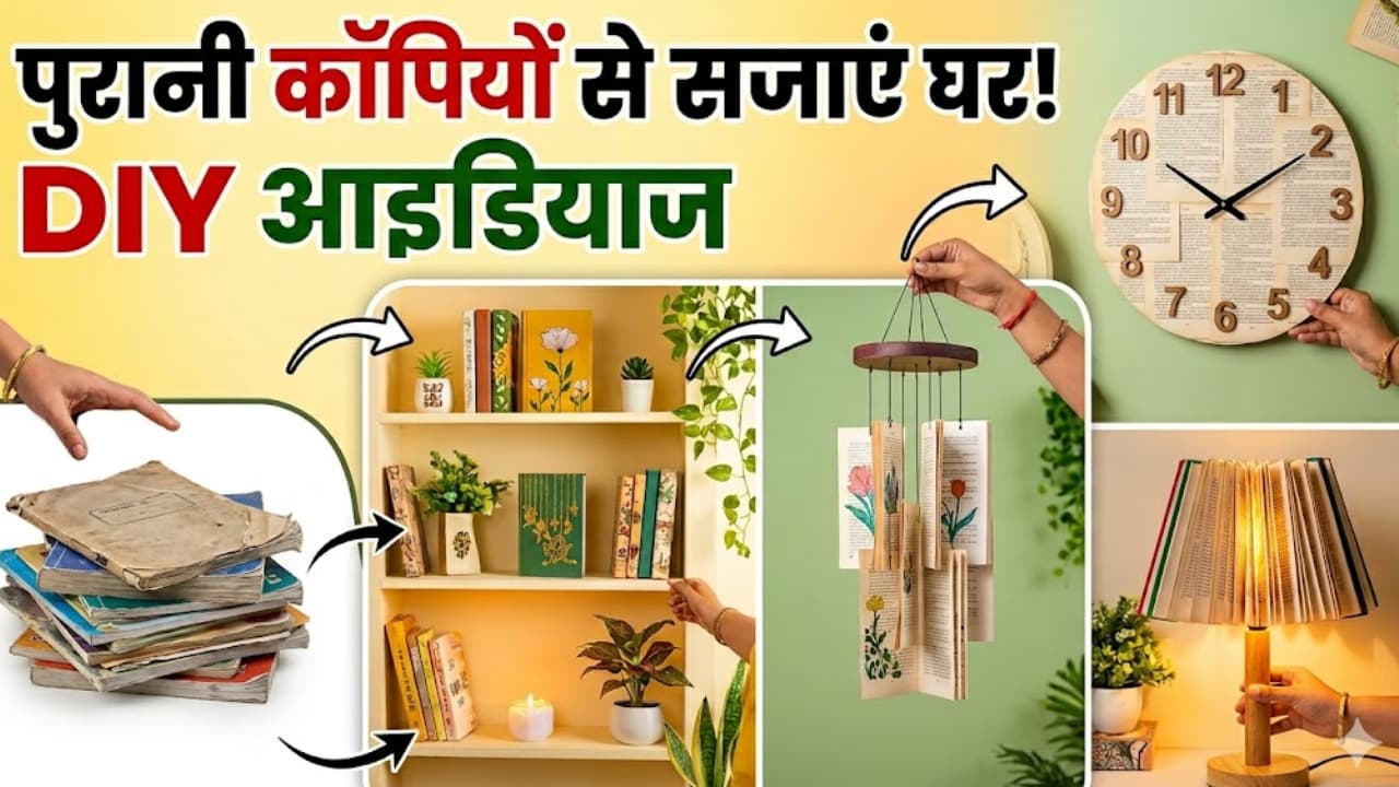 नई क्लास शुरू होने के साथ बच्चों की कॉपी-किताबें भी नई आती हैं। इस दौरान सबसे बड़ी प्रॉब्लम यही है कि पुरानी किताबों का क्या किया जाए शेल्फ में बुक्स रखने की जगह न के बराबर है तो रद्दी या कबाड़ वाले को देने की बजाय घर की सुंदरता बढ़ाने में इस्तेमाल करें। जी हां, इस आर्टिकल में देखें रद्दी कॉपियों और किताबों से होम डेकोरेशन के यूनिक आइडियाज, जिन्हें आप भी ट्राई कर सकती हैं। चलिए जानते हैं इन DIY Crafts के बारे में विस्तार से।