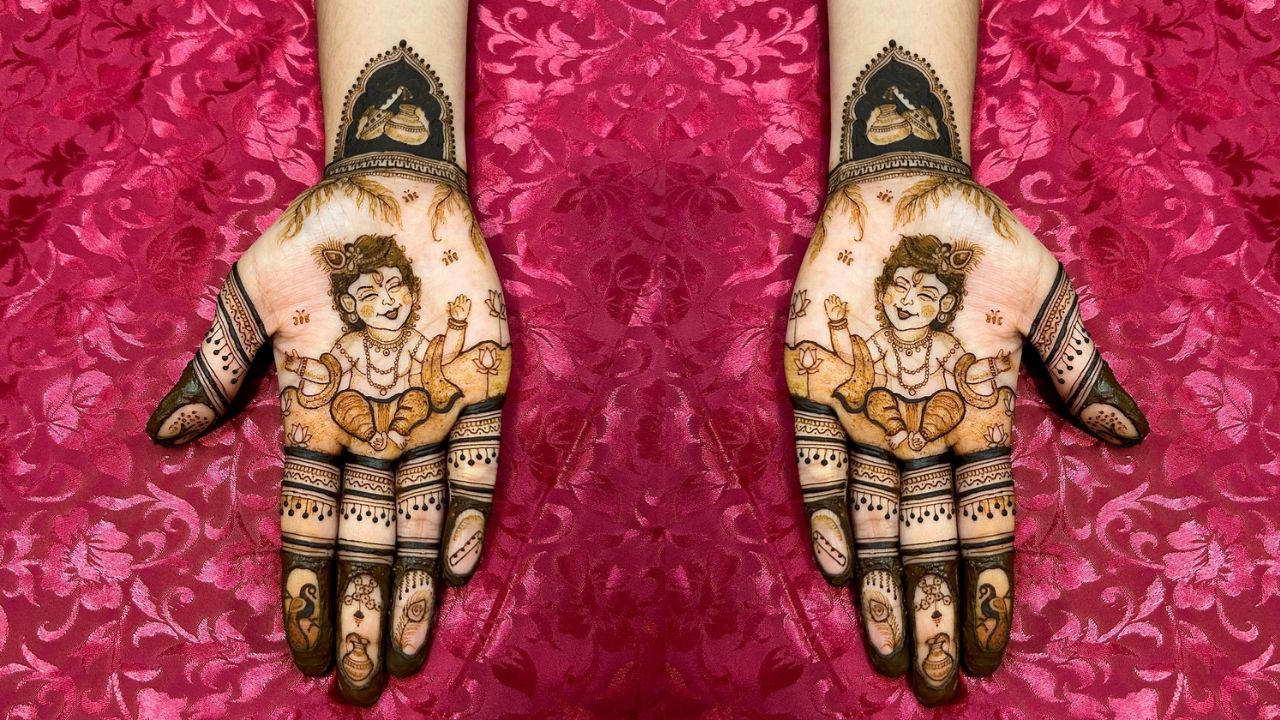 Bal Krishna Janmastami Mehndi Designs: जन्माष्टमी के मौके पर भी भक्त अपने लाडले गोपाल के नाम की मेहंदी लगाते हैं। ऐसे में इश बार बेल या अरेबिक नहीं, लगाएं बाल कृष्ण के मेहंदी डिजाइन।