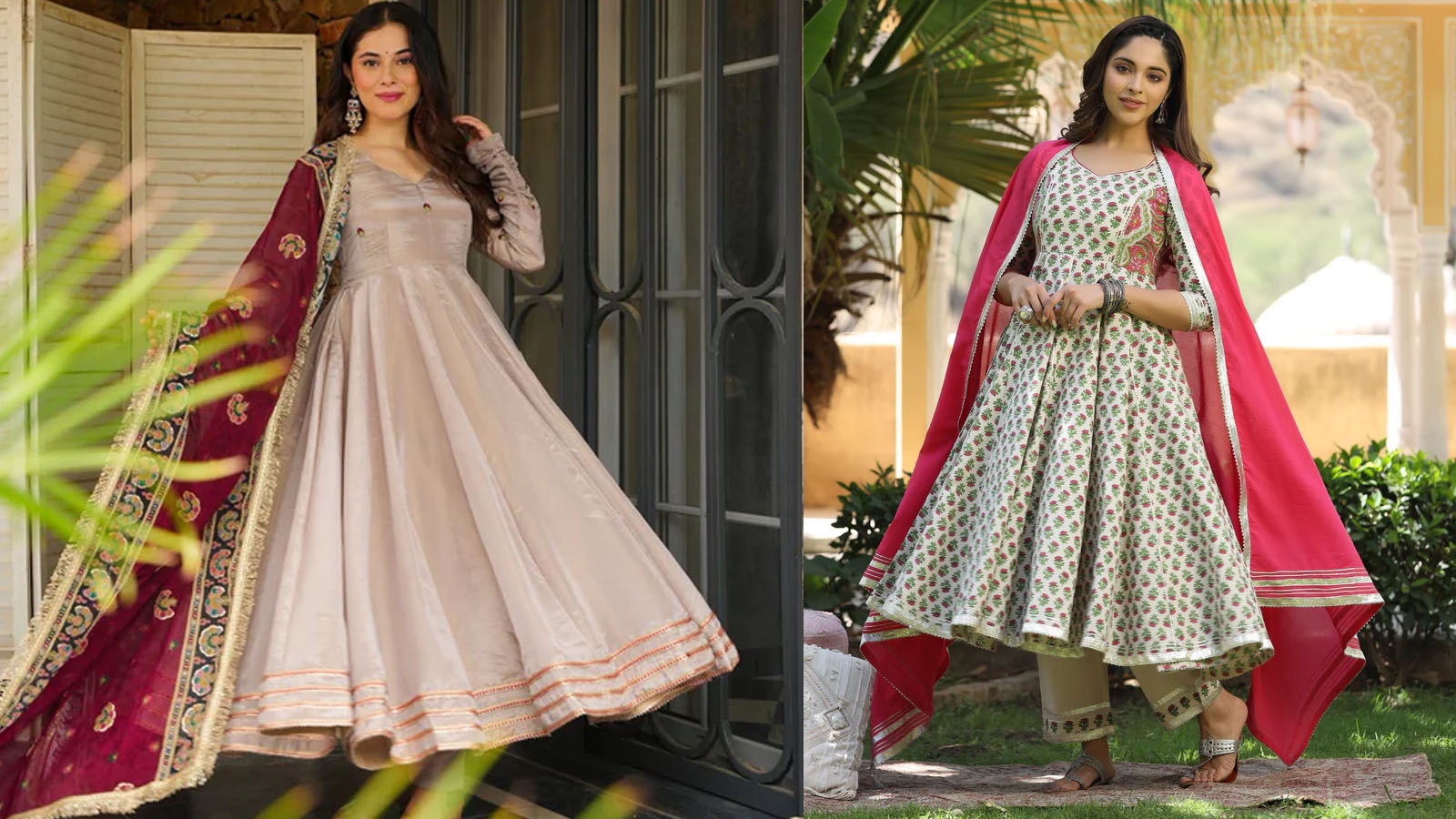 अनारकली पैटर्न तो हमेशा से फेवरेट रहा है। इसके मल्टीपल कलियां पेट और हिप्स को पूरी तरह कवर करती हैं और आपको रॉयल लुक देती हैं। शादी-ब्याह या त्योहारों पर पहनने के लिए यह सबसे बढ़िया ऑप्शन है।