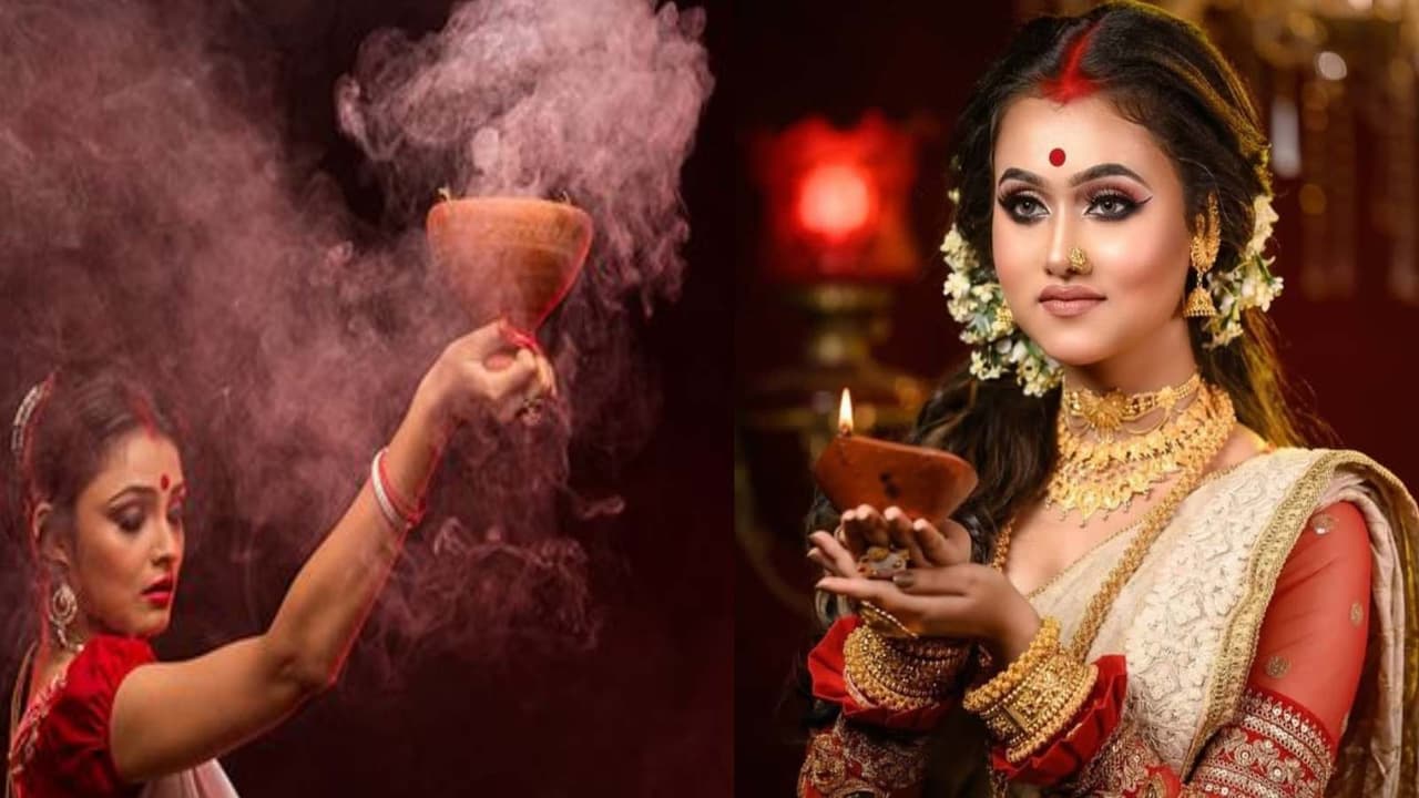 Bengali Makeup ook For Puja: कन्या पूजन और नवरात्रि जैसे खास मौकों पर, बंगाली मेकअप लुक आपको एक शानदार और पारंपरिक अंदाज देता है। लाल बिंदी, बोल्ड आंखें और एक क्लासी साड़ी के साथ, यह लुक बेहद मनमोहक लगता है। इन आसान मेकअप टिप्स की मदद से, आप घर बैठे ही एकदम परफेक्ट बंगाली-स्टाइल लुक पा सकती हैं।