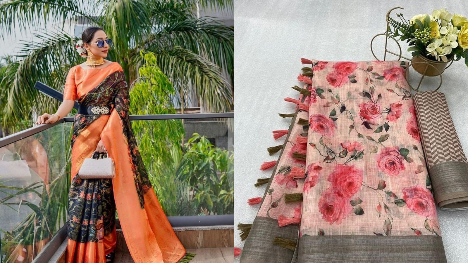 साड़ी खरीदने का प्लान बना रही हैं तो कोरा मसलिन फैब्रिक को फ्लोरल कलमकारी डिजाइन पर खरीद सकती हैं। इसे नेचुरल रंगों, फूल पत्तियों और शेडिंग पैटर्न पर तैयार किया जाता है। आप इसे पार्टी-फंक्शन में हैवी ज्वेलरी संग वियर करें। इसके अलावा फॉर्मल लुक के लिए इयररिंग्स कैरी कर सकती हैं। बाजार में 500-700 रुपए में इसे खरीदा जा सकता है।