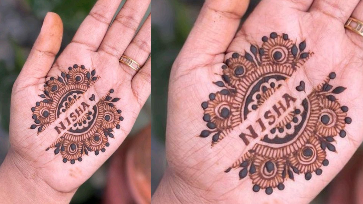 वेडिंग मेहंदी के लिए हाथ में दूल्हे और दुल्हन का नाम जरूर लिखा जाता है। ऐसे में आप राउंड शेप मेहंदी बनवा कर बीच में अपने पार्टनर का नाम लिखकर मेहंदी से हार्ट शेप बनवा कर खूबसूरत और सिंपल सी मेहंदी हाथों पर लगा सकते हैं।