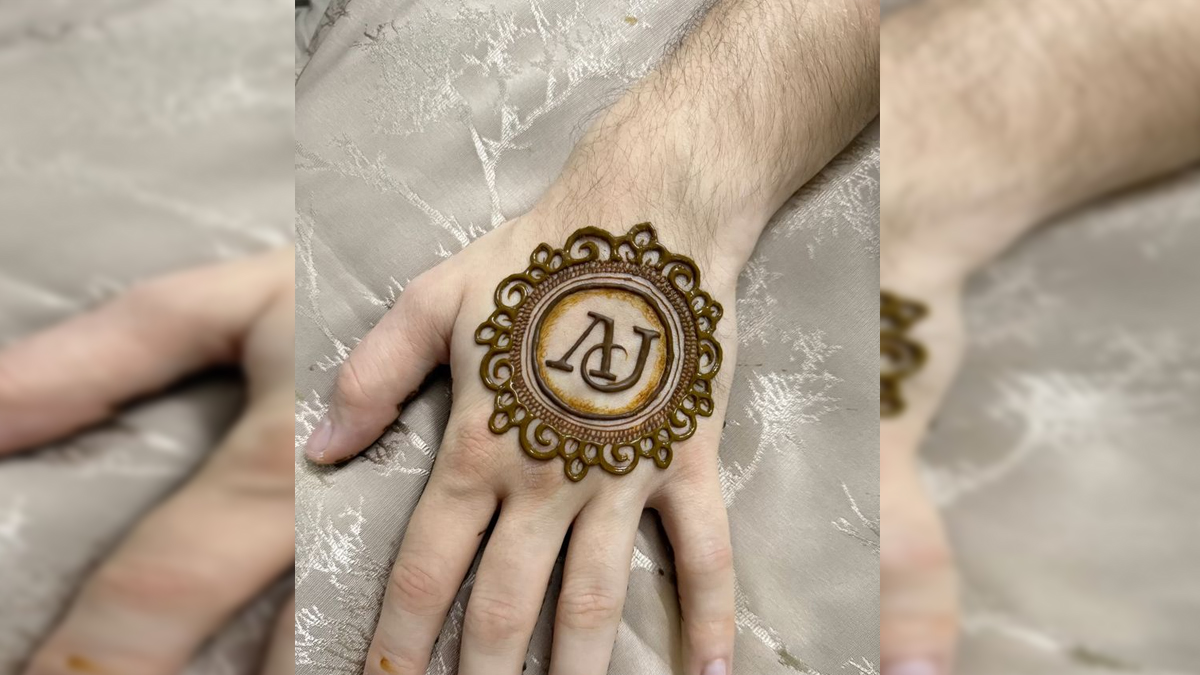 शादी में दुल्हन के साथ-साथ दूल्हे के हाथों में भी मेहंदी लगाई जाती है। अगर आप हैवी मेहंदी हाथ पर नहीं लगाना चाहते, तो इस तरह की राउंड सर्किल मेहंदी लगवा सकते हैं। जिसमें बीच में आपकी वेडिंग डेट और अपने पार्टनर के नाम का इनिशियल लिखा है।
