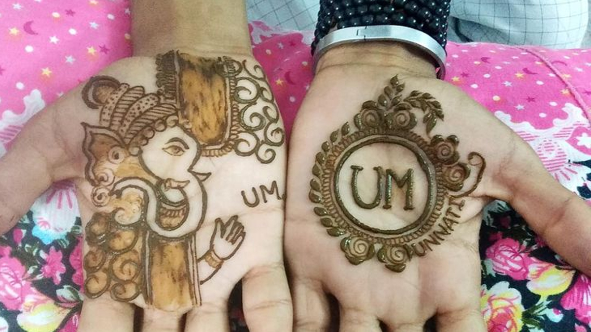 गणपति जी मेहंदी डिजाइन (Initial letter mehndi design groom)
