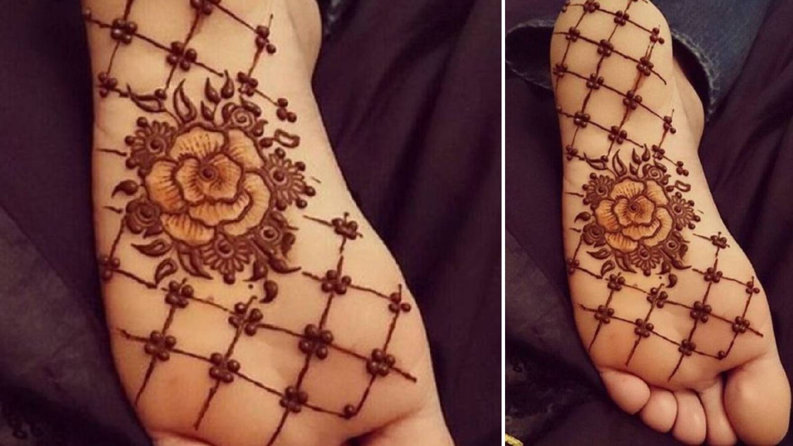 जालदार मेहंदी में आप सेंटर में गुलाब का फूल बनाएं और पूरे पैरों को सजा लें। यह भी डिजाइन बेहद आसान है और आप एक या दो बार की प्रैक्टिस के बाद बैक फुट मेहंदी लगा सकती हैं।