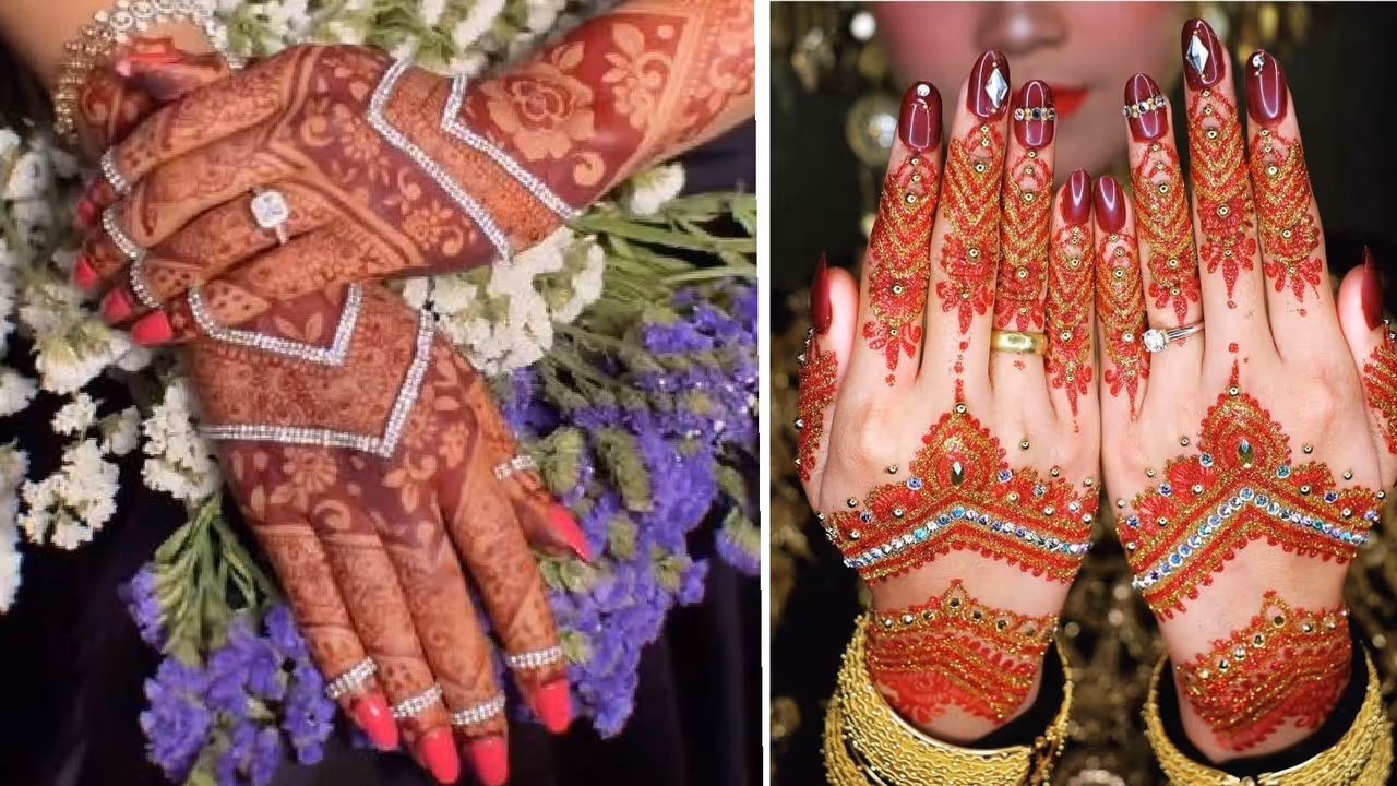 बैक हैंड मेहंदी में लगाएं राइनस्टोन की पट्टी