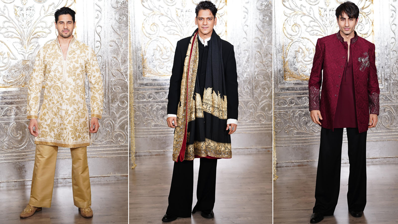 सिद्धार्थ मल्होत्रा और विजय वर्मा ने इस दौरान अपने लुक को एकदम ट्रेडिशनल रखा। सिद्धार्थ की बात करें तो उन्होंने हैवी हैंडक्राफ्ट जरी वर्क वाला आइवरी कुर्ती और गोल्डन स्ट्रैट पैंट वियर किया था। इस कुर्ते की आउटलाइन पर गोल्डन लेस भी लगाई गई थी, साथ में गोल्डन जूते लुक को कंप्लीट कर रहे हैं। इस तरह का सेट आप भी दिवाली पार्टी में अपने पति या भाई को दिला सकती हैं। वहीं विजय का लुक रीक्रिएट करना काफी ईजी है। उन्होंने ब्लैक थ्री-पीस ब्लैक सूट के साथ हैवी जरदोजी वर्क स्टॉल कैरी किया है।