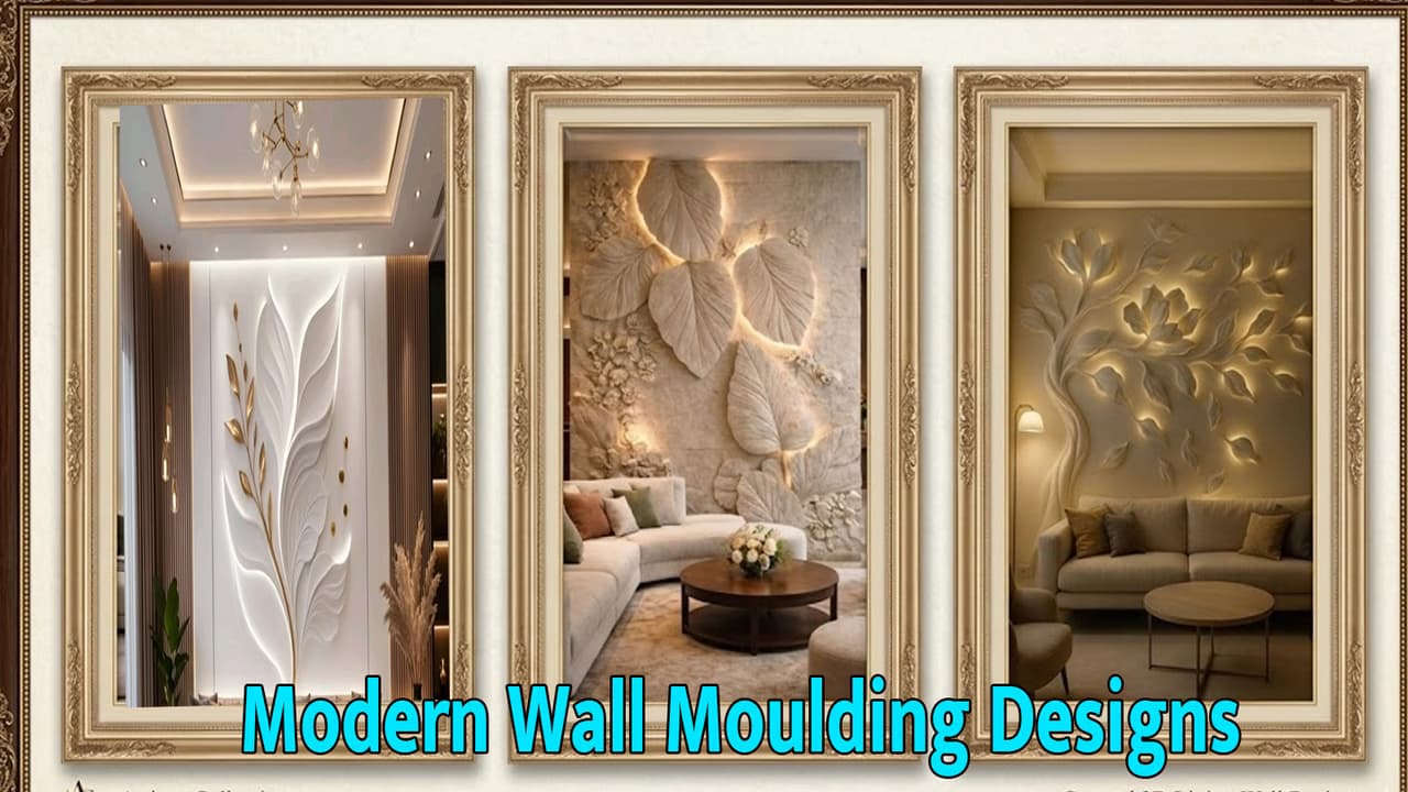 यहां पर हम नेचर से इंस्पायर्ड 3 वॉल मोल्डिंग डिजाइंस दिखा रहे हैं। जिसे आप अपने लिविंग रूम के दीवार पर बनवा सकते हैं। गुलाब पैटर्न में बनी मोल्डिंगपुट्टी से बनती है, एक बेहतरीन कारीगर ही इस डिजाइन को बना सकता है। वहीं दूसरे और तीसरे डिजाइन में पहले वुड या पीवीसी पैनल से फ्रेमिंग की गई है और फिर उसके अंदर पुट्टी से डिजाइन बनाया गया है। आप चाहें तो पैनल बनाकर उसके अंदर वॉलपेपर लगा कर लग्जरी टच लिविंग रूम को दे सकते हैं।